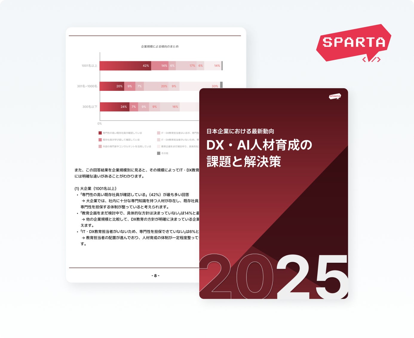 株式会社TeamSpartaは、約200社へのアンケート結果をもとに、日本企業におけるDX・AI人材育成の現状と課題を分析した「【2025年度最新版】DX・AI人材育成の課題と解決策」レポートを発表しました。