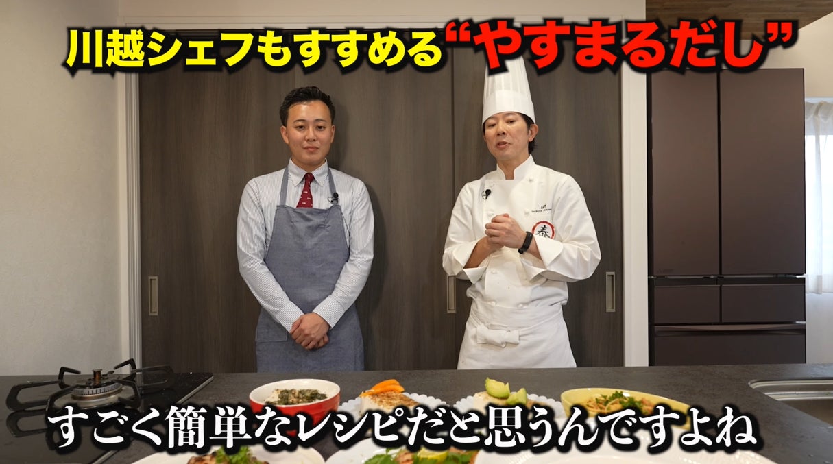 復帰後初”の企業案件は“だし”!?料理界のカリスマ川越シェフが、やすまるだしを使ったアレンジレシピでだしの新たな活用法をお届けします。