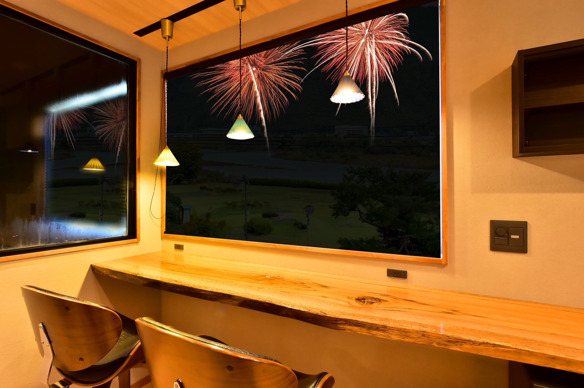 夏の夜、千曲川の清流を舞台に約10,000発の花火が夜空を彩り、温泉街・戸倉上山田の情緒とともに、信州の夏を華やかに演出します。そんな花火を特別なプライベート空間から眺めながら、心に残るプレミアムな夜をお過ごしください。