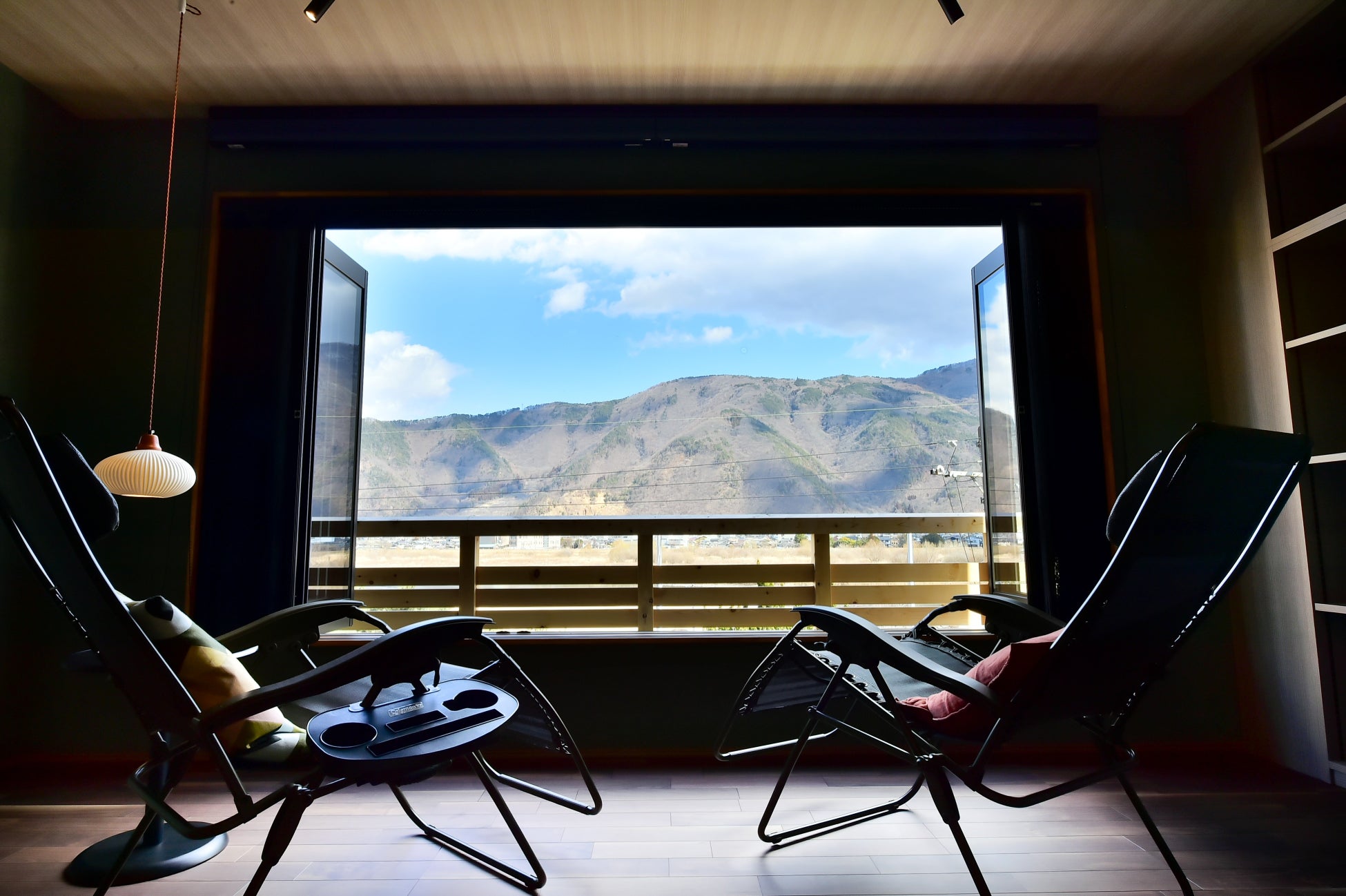 千曲川と里山を望む72㎡の広々とした非日常空間で、一夜限りの特別な時間をお過ごしいただけます。