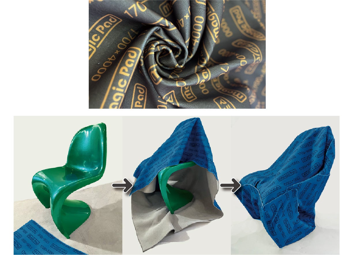 面接着できる特殊な生地で、テープもヒモも使わずどんな形状の荷物も包め、使用後のゴミも出ません。家具の運搬にも使えるサイズ感、使用する芯材=クッション材の選考、視認性の高いプリントデザインにこだわりました。『マジックパッド®︎』は包むだけではなく、崩れやすい荷物の固定バンドとして、広げてカバーとして、たたんで袋にもなります。工夫次第で多彩な使い方ができるので、様々なシーンでお役に立てる場面がきっとあると思います。