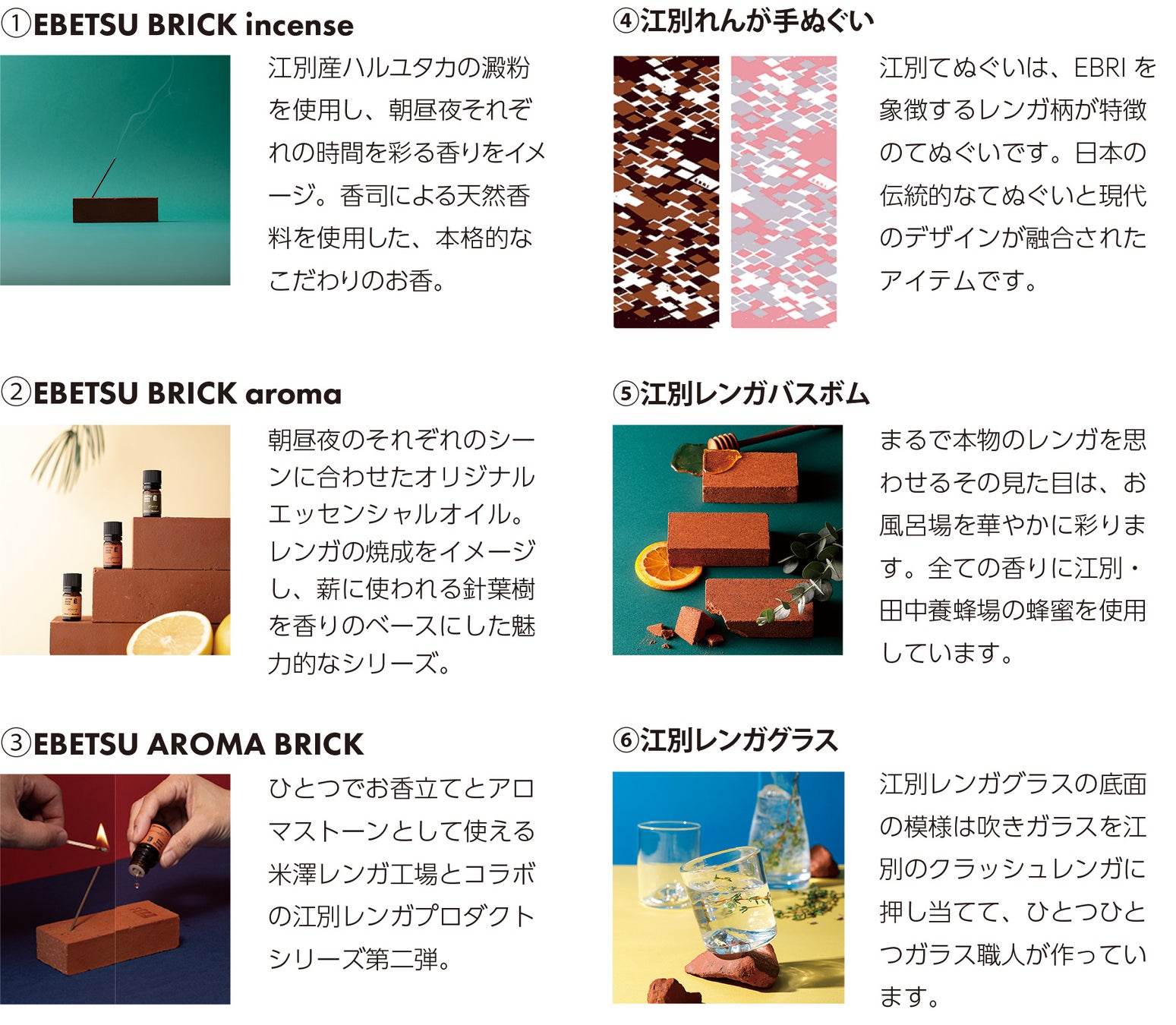 現在も稼働する工場は需要変化に伴い3社へと減少しましたが、ЁBRI では江別再活性化・レンガの未来を考え、様々な活動に取り組んでいます。施設自体は使われなくなったレンガ工場(旧肥田工場:有形文化財)を保存活用。地元の良いモノ・コト・ヒトを再発見・発信出来る地方施設として毎日のイベント開催や、地元企業・作家とのコラボレーション商品の開発を行っています。
