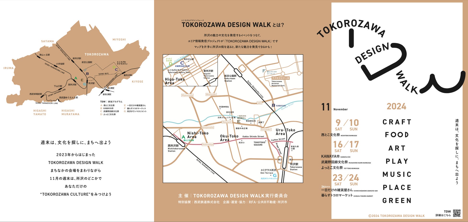 TOKOROZAWA DESIGN WALK実行委員会(所在地:埼玉県所沢市)は、埼玉県所沢市におけるアート、クラフト、カルチャーを掘り起こし、地域社会と一体となった文化体験を提供することを目的としたエリア回遊プログラム「TOKOROZAWA DESIGN WALK 2024」を開催いたします。