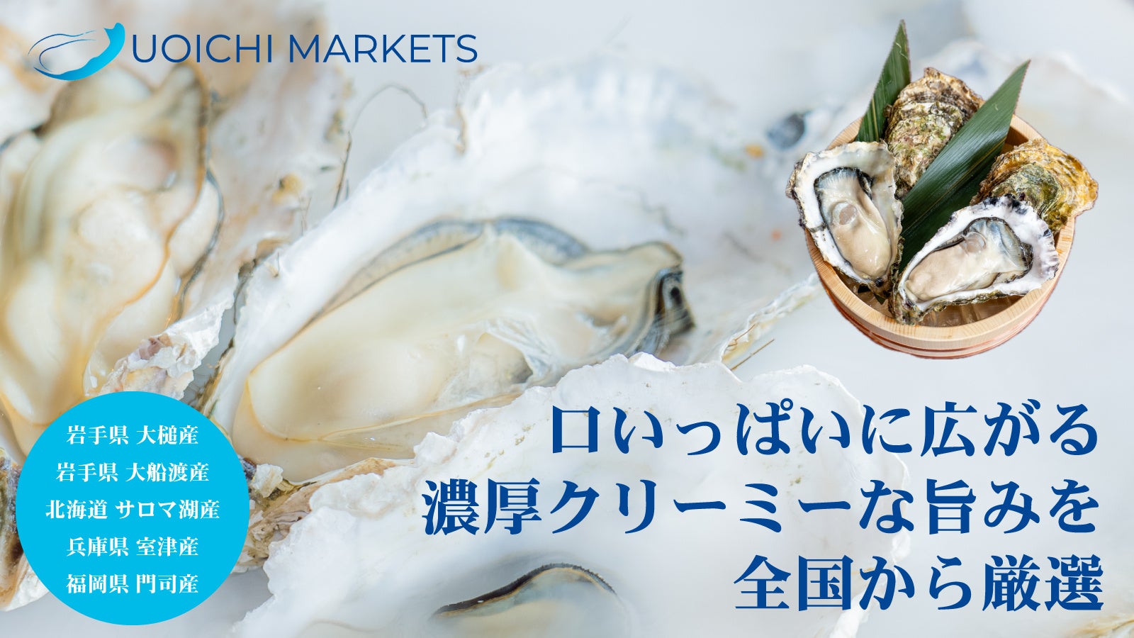 「UOICHI MARKETS」は全国の産地から厳選した旬の牡蠣を中心に、帆立などの海産物や加工食品の通販・サブスク(定期購入)ができるショップで、真牡蠣・岩牡蠣・殻付き牡蠣など豊富に取り揃えています。