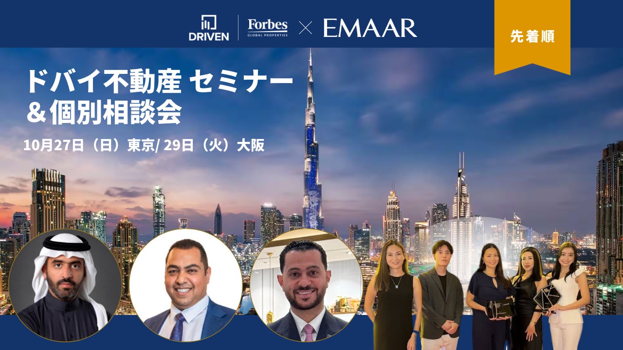 ドリブン・プロパティーズ(Driven Properties LLC 本社:ドバイ CEO:アブダラ・アラジャジ)は、世界一の超高層タワー「ブルジュ・ハリファ」のデベロッパーとして有名なEMAAR(エマール)のトップ営業マネジャーを日本に招聘し、セミナーを共同開催します。本セミナーでは、”なぜ日本の富裕層がドバイに今注目するのか?” - ドバイとその不動産の魅力に迫ります。