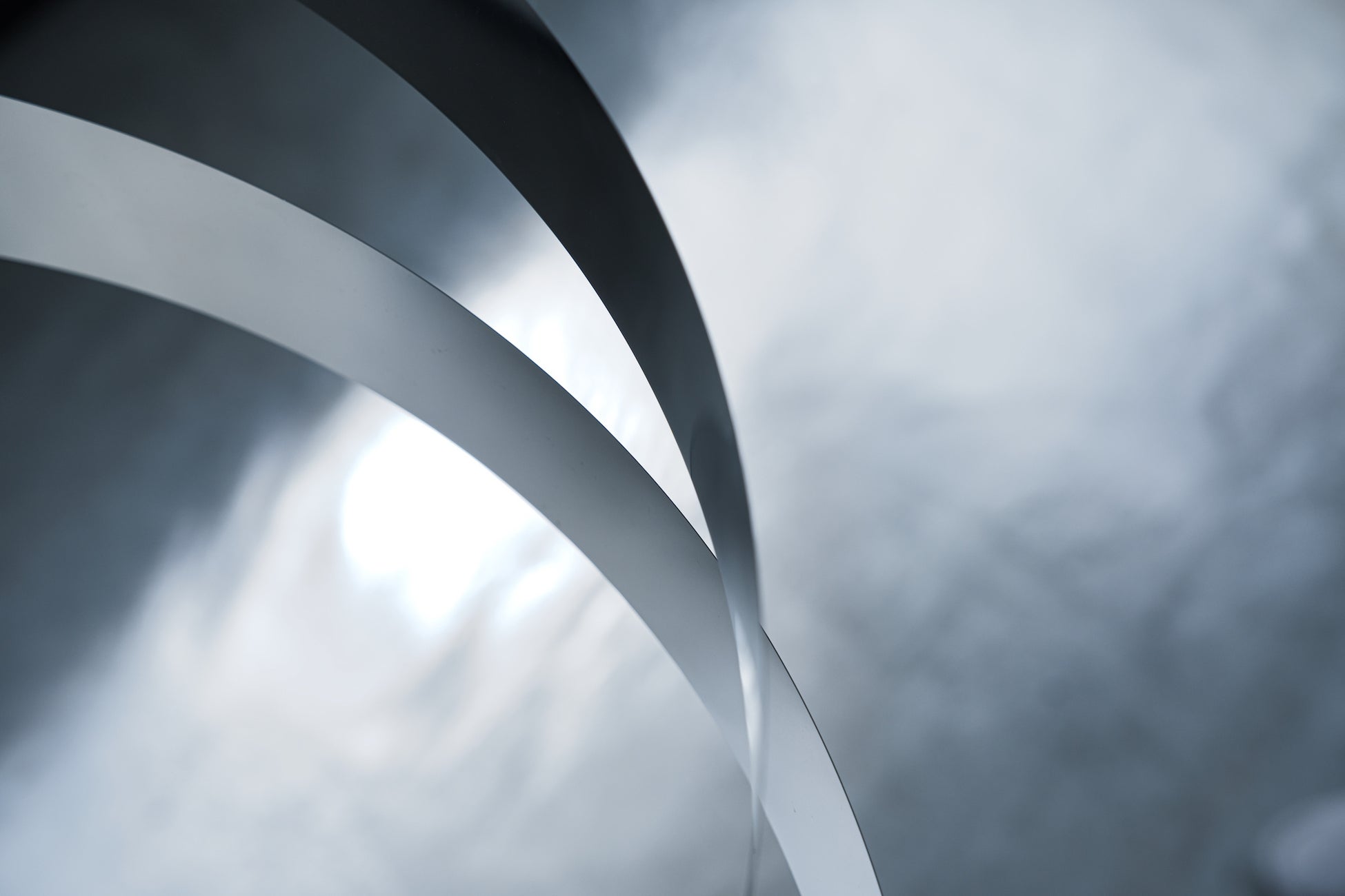 複数のアームによって支えられる長くしなやかなステンレス板の螺旋構造。各アームはそれぞれが独立して伸縮することで螺旋に緊張や緩和をもたらします。また、そのたわみは全体に干渉し合うことで、刻一刻と新たな秩序を生み出し続けます。
