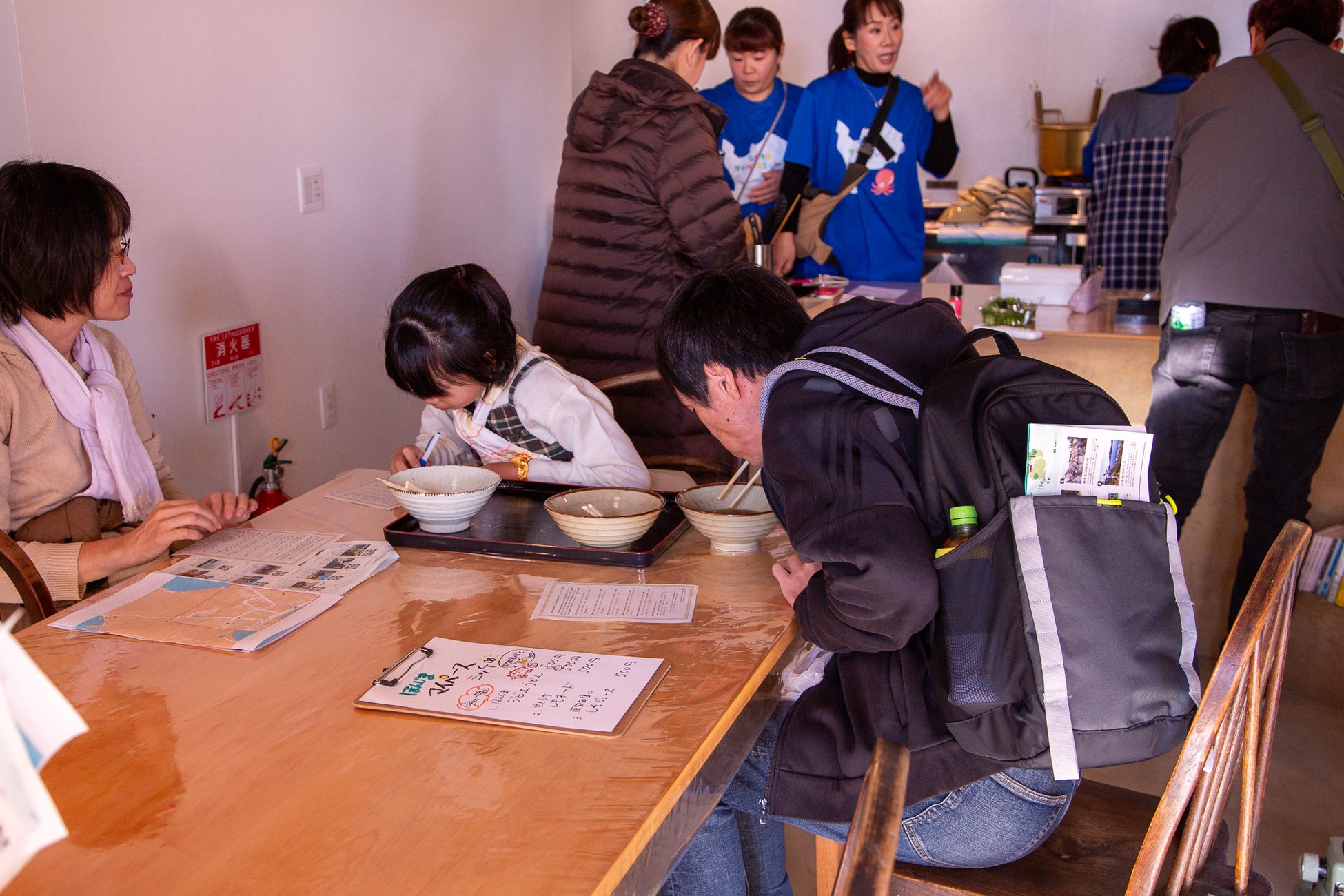 島のグルメにもチェックポイントを設定。島で取れた海産物を使った「たこ飯」は受付開始とともに長蛇の列ができました。