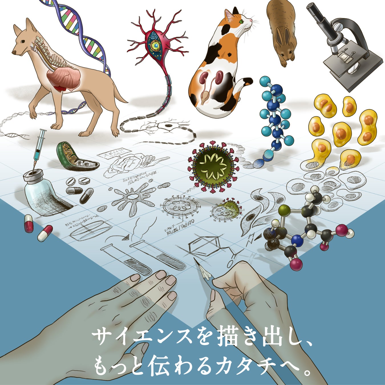 「科学的な正確性 × 洗練されたデザイン性」をコンセプトに、ライフサイエンスや医療・製薬分野を中心とした論文用イラスト、動画、各種デザイン(印刷物など)を総合的に提供しています。PhD保有の研究者とベテランデザイナーによるチーム体制で、国内外のクライアントに対し、わかりやすく魅力的なビジュアルコンテンツをご提案します。