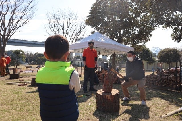 斧で丸木を割ることができる!?ダイナミックに斧を振り上げて断ち割る体験ができるイベント