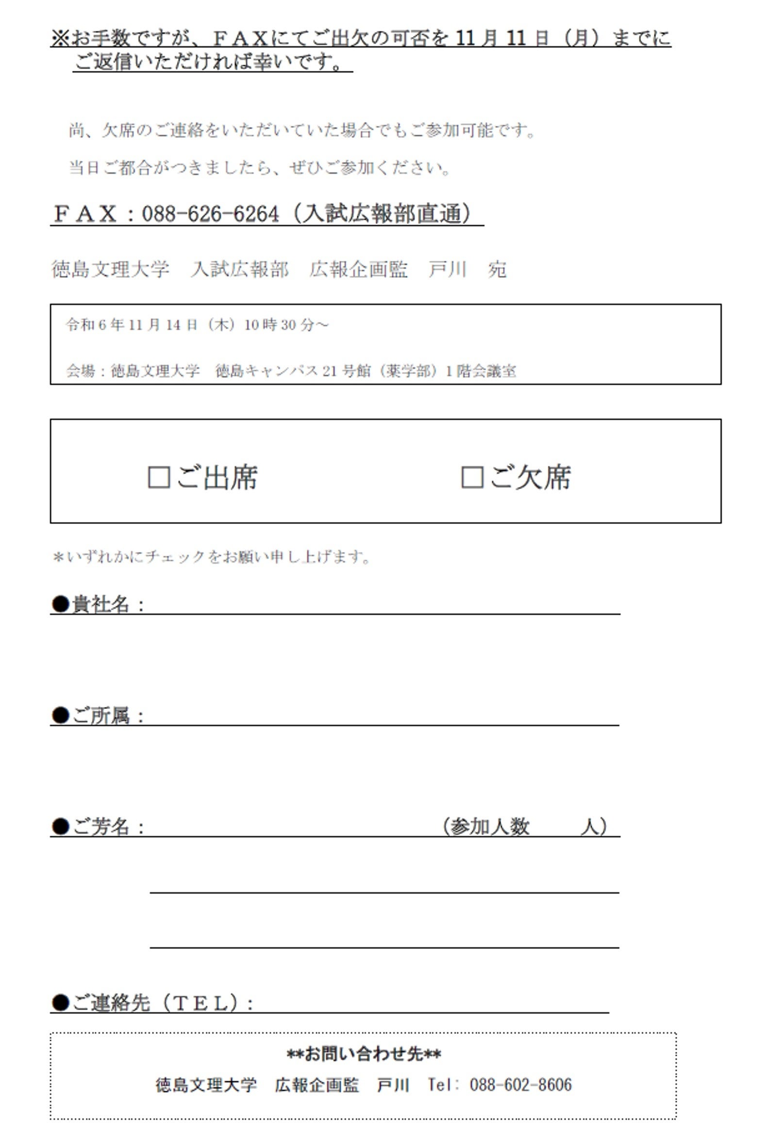 FAX送信書にて11月11日(月)までにFAX:088-626-6264ご返信ください。