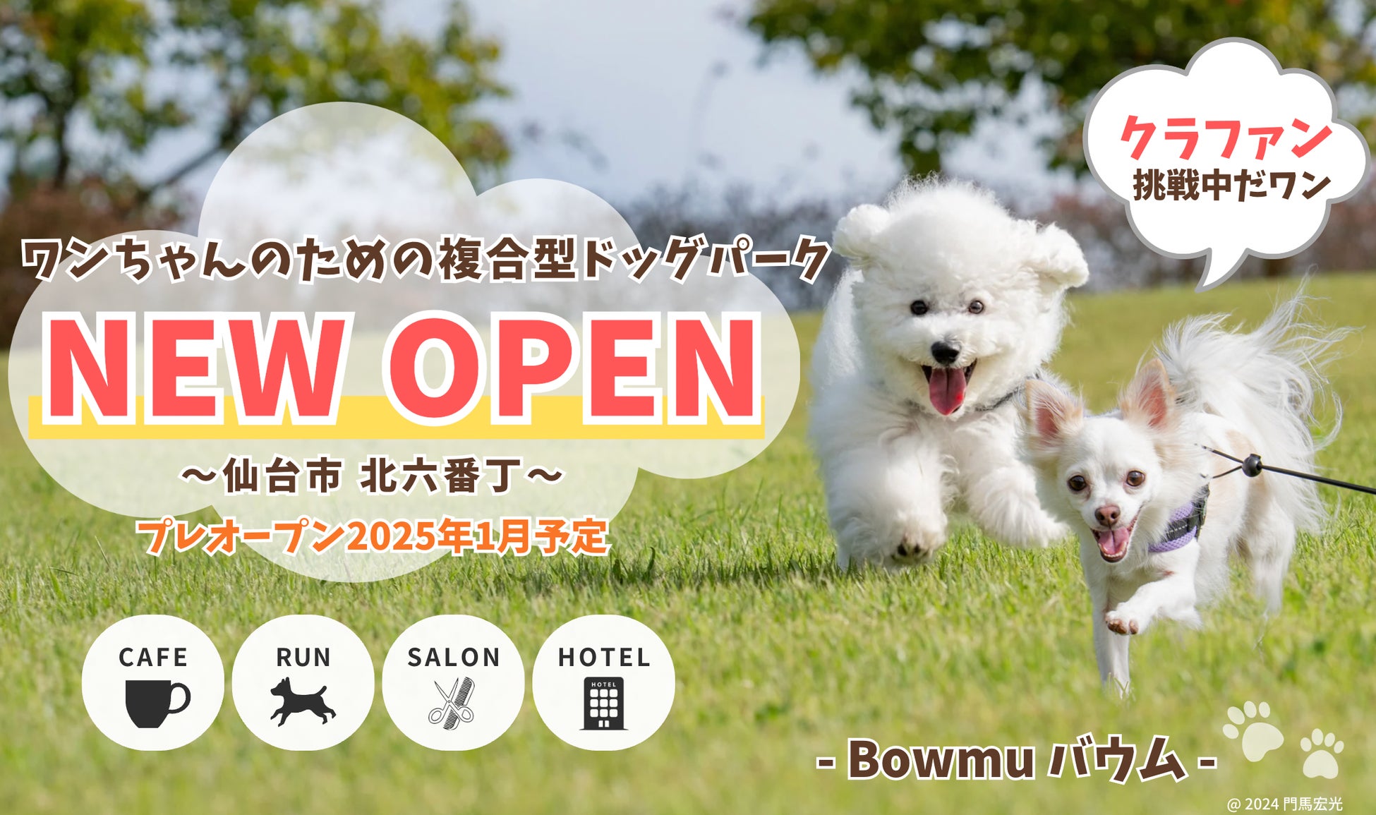 株式会社MIJウエルネス(本社所在地:宮城県仙台市、代表取締役社長:伊藤 政文)は2025年1月、仙台市青葉区に、宮城県内唯一の屋内ドッグランをはじめ、ドッグカフェ、トリミングサロン、ドッグホテル、保育園を備えた複合型ドッグパーク『Bowmu(バウム)』を開業いたします。