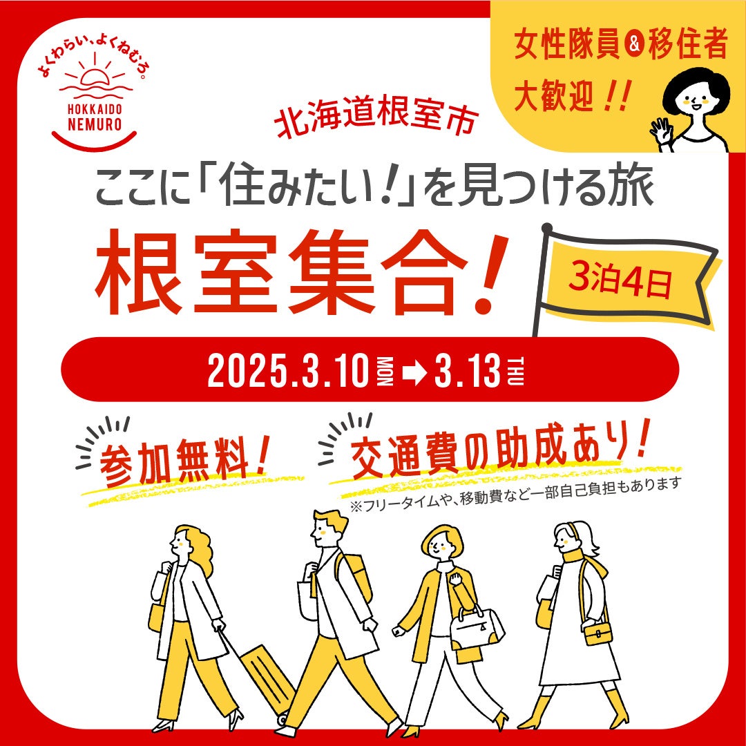 令和7年3月10日(月)〜3月13日(木)の3泊4日で、北海道根室市での地域おこし協力隊&移住者募集体験ツアーを開催いたします!