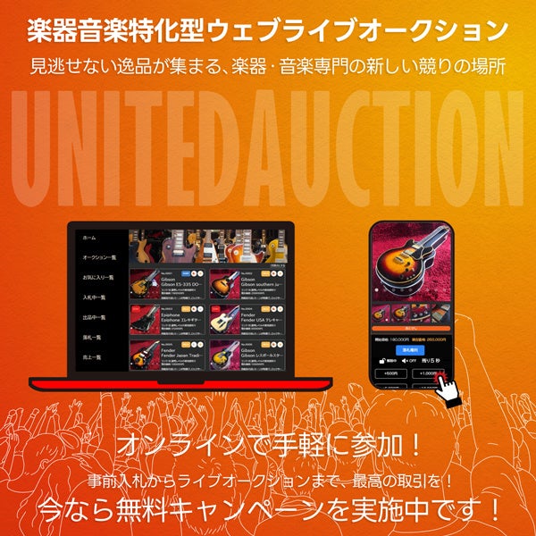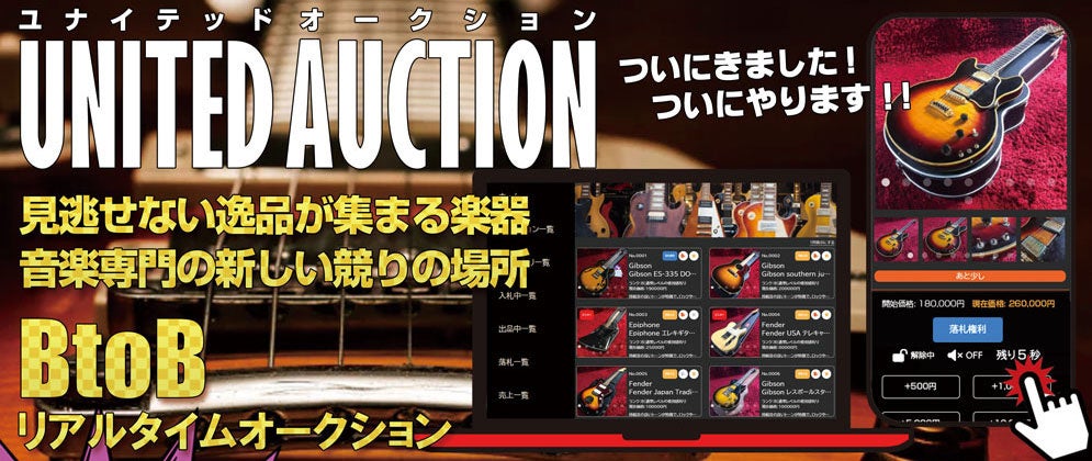 2024年10月1日 — 近江屋ユナイテッド株式会社は、オンラインオークションプラットフォーム「ユナイテッドオークション」において、さらなるサービス強化を図り、中古楽器の未来のためとユーザー体験向上のための新たな機能を導入いたしました。これに伴い、無料キャンペーンおよび無料集荷サービスをスタートします。「ユナイテッドオークション」は、事前入札とリアルタイムでのライブオークションの両方を提供するオンラインプラットフォームです。参加者は、PCやスマホから簡単にアクセスし、どこからでもオークションに参加できるのが特徴です。