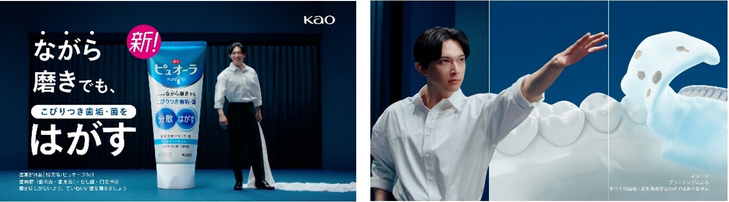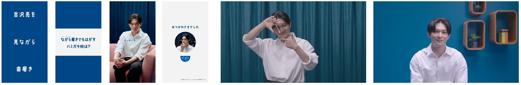ピュオーラハミガキのリニューアルに伴い、人気俳優の吉沢亮さんを起用した新CMを2024年10月28日より全国で 放映中。本CMでは新ピュオーラの特長である『いつもの「ながら磨き」でも歯垢や菌を根元からはがす』 を、吉沢さんがテンポよく ポーズを決めながら紹介していきます。シーン毎にくるくると変わる吉沢さんの豊かな表情やキレのあるセリフ回し、歯の汚れを根元からはがす迫真の演技、特大サイズの新ピュオーラをアンベールする爽快なアクションは必見。3分割のアングルで、様々な角度から、多彩な吉沢亮さんを楽しめる内容になっています。