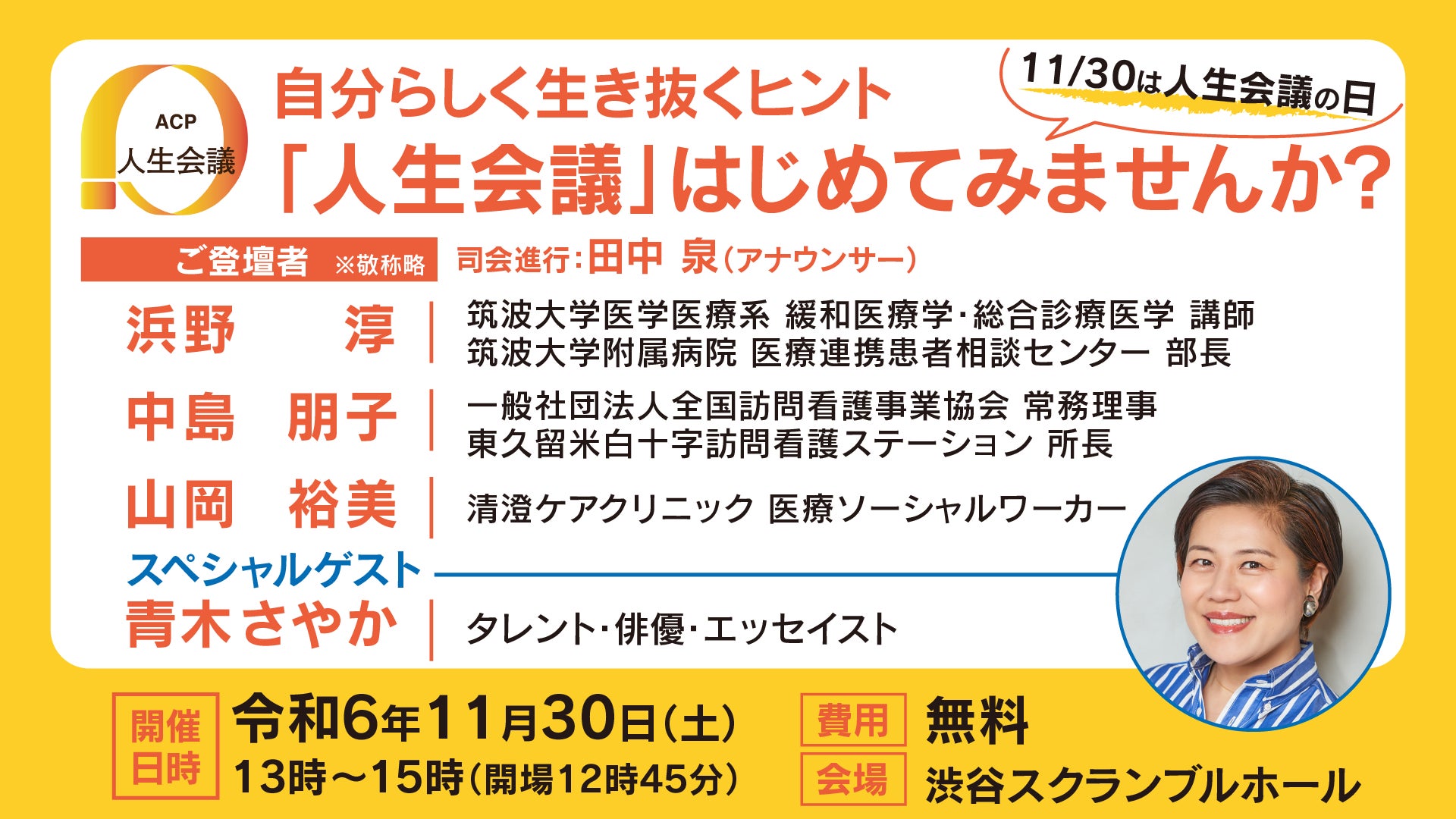 【厚生労働省主催】『自分らしく生き抜くヒント~「人生会議」はじめてみませんか?~』11月30日(土)渋谷スクランブルホールで開催決定