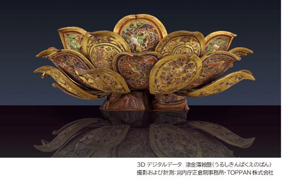 宝物を360度からスキャンした高精細な3Dデジタルデータに演出を施した展示では、宝物の細部や質感をリアルに感じることができます。また、正倉院事務所が研究・製作を進めてきた「再現模造」を、最新のデジタル制御による映像・音楽・照明との組み合わせで展示することにより、正倉院の世界に没入できる新たな鑑賞体験も提供します。気鋭のクリエーター陣が言葉や空間の演出を手がけた、まさにショーとしての華々しさに彩られた展示イベントです。ぜひお見逃しなく!