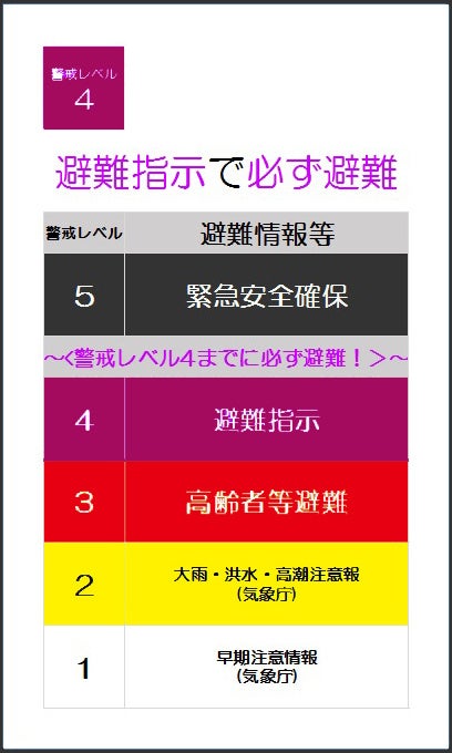 大雨の警戒レベルをわかりやすく伝える5色