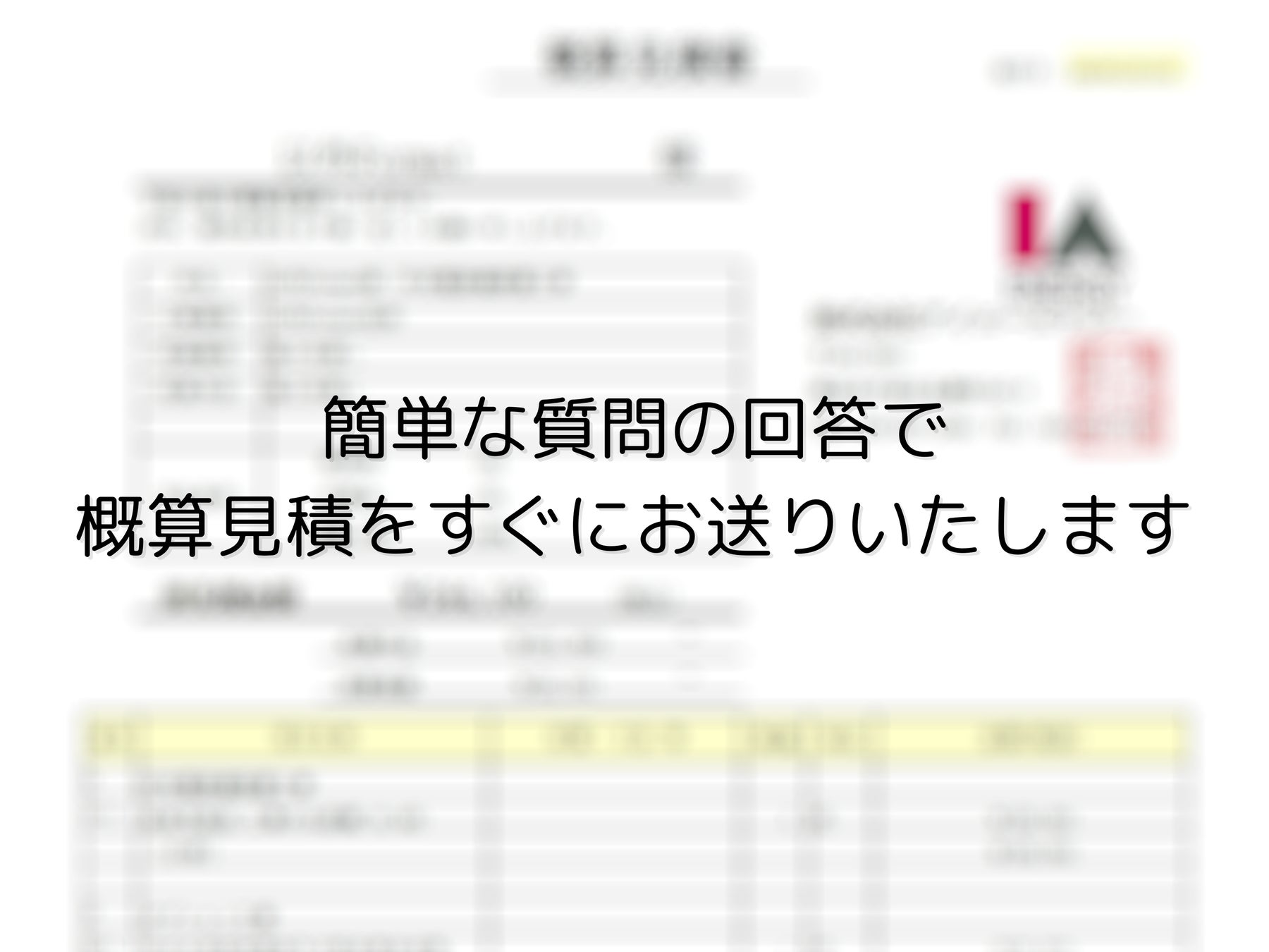 簡単な質問に回答いただくだけで、回答完了から5~10分程度で概算見積書をPDF形式でメール送信いたします。