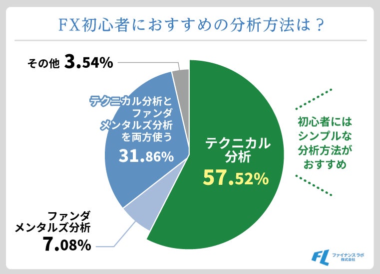テクニカル分析を推奨する人が過半数を占めており、ツールが豊富で視覚的にわかりやすいことから、初心者にとっておすすめの手法と考えられます。