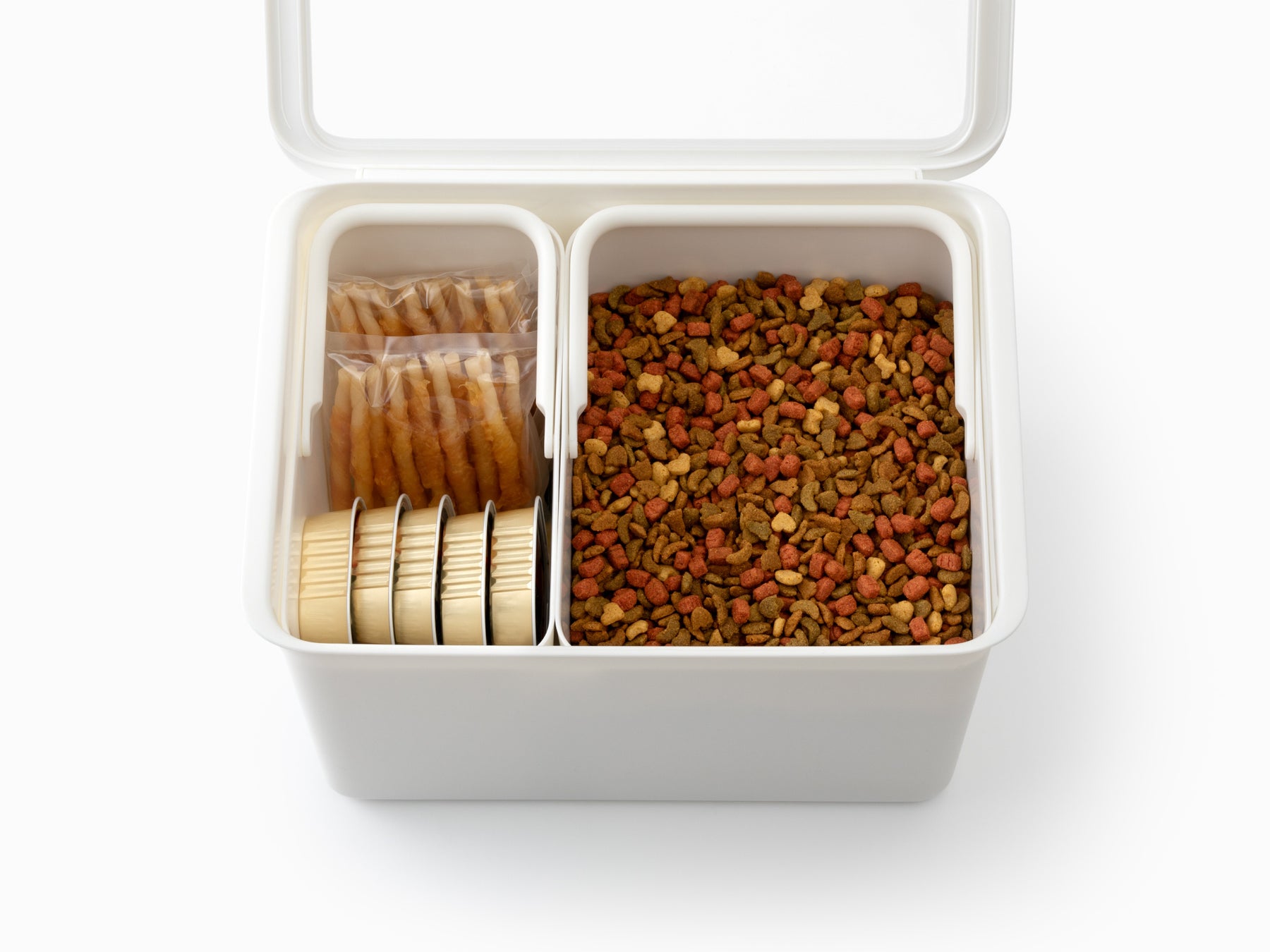 ペットフードの保存にもおすすめです。密閉性が高くニオイが漏れにくいため、袋から移し替えての保管にも最適です。