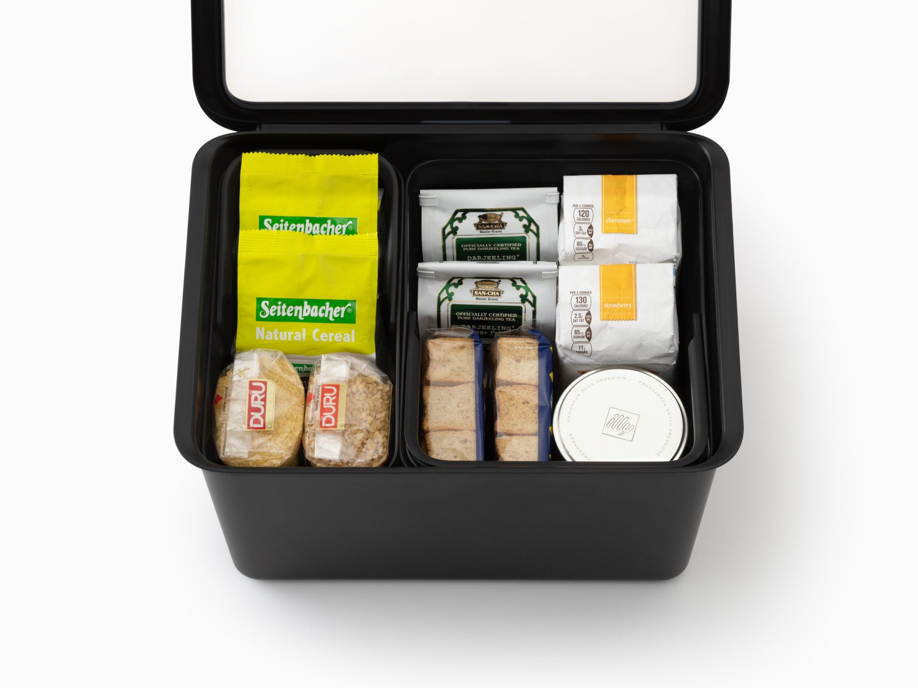 シリアルやオートミール、ジャム、コーヒーのような朝食セットの収納にも。