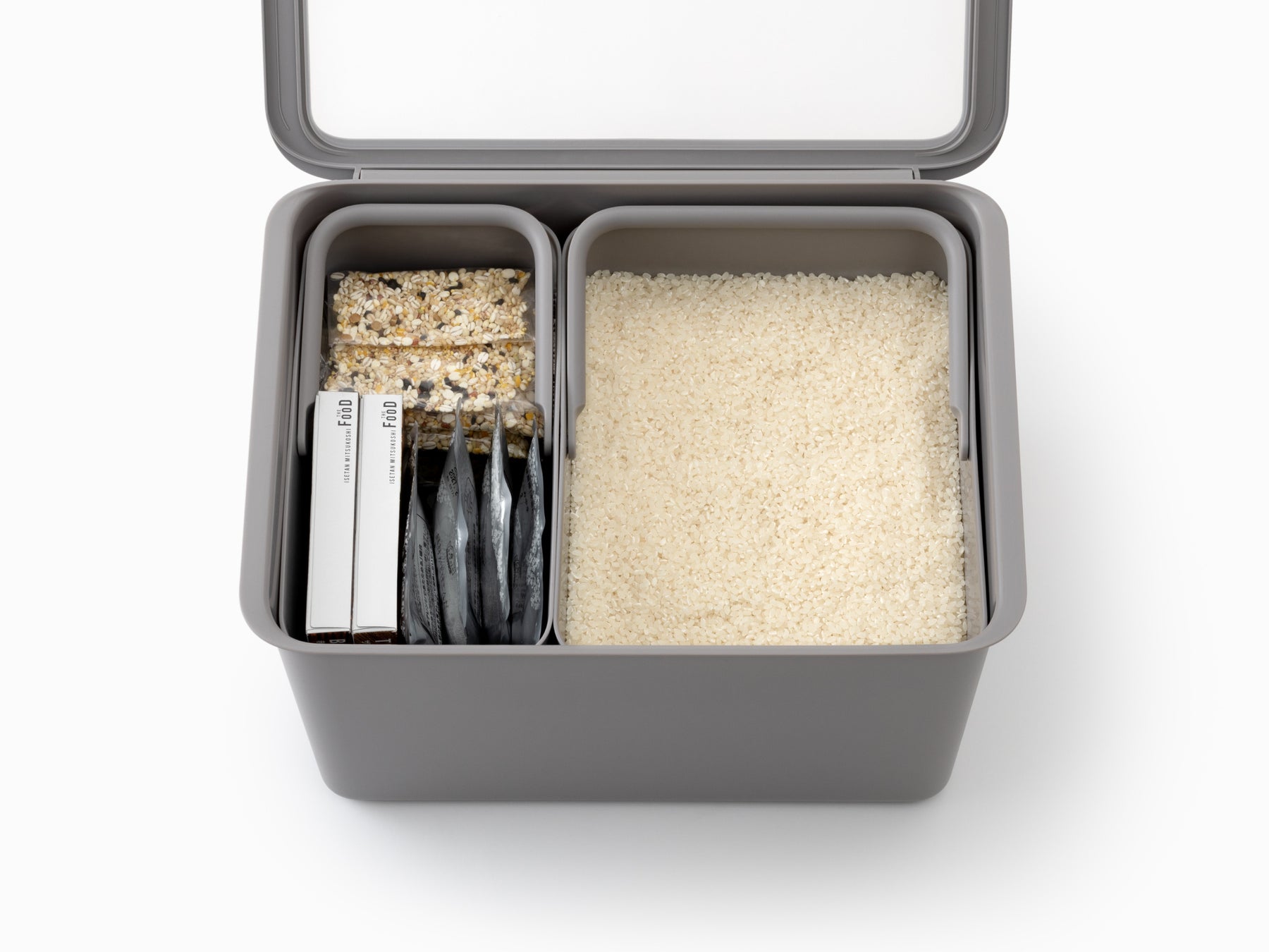 アウターケースとストックケースで米びつ内を仕切られるため、炊飯時に白米と一緒に使うものを、取り出しやすくひとまとめにできます。