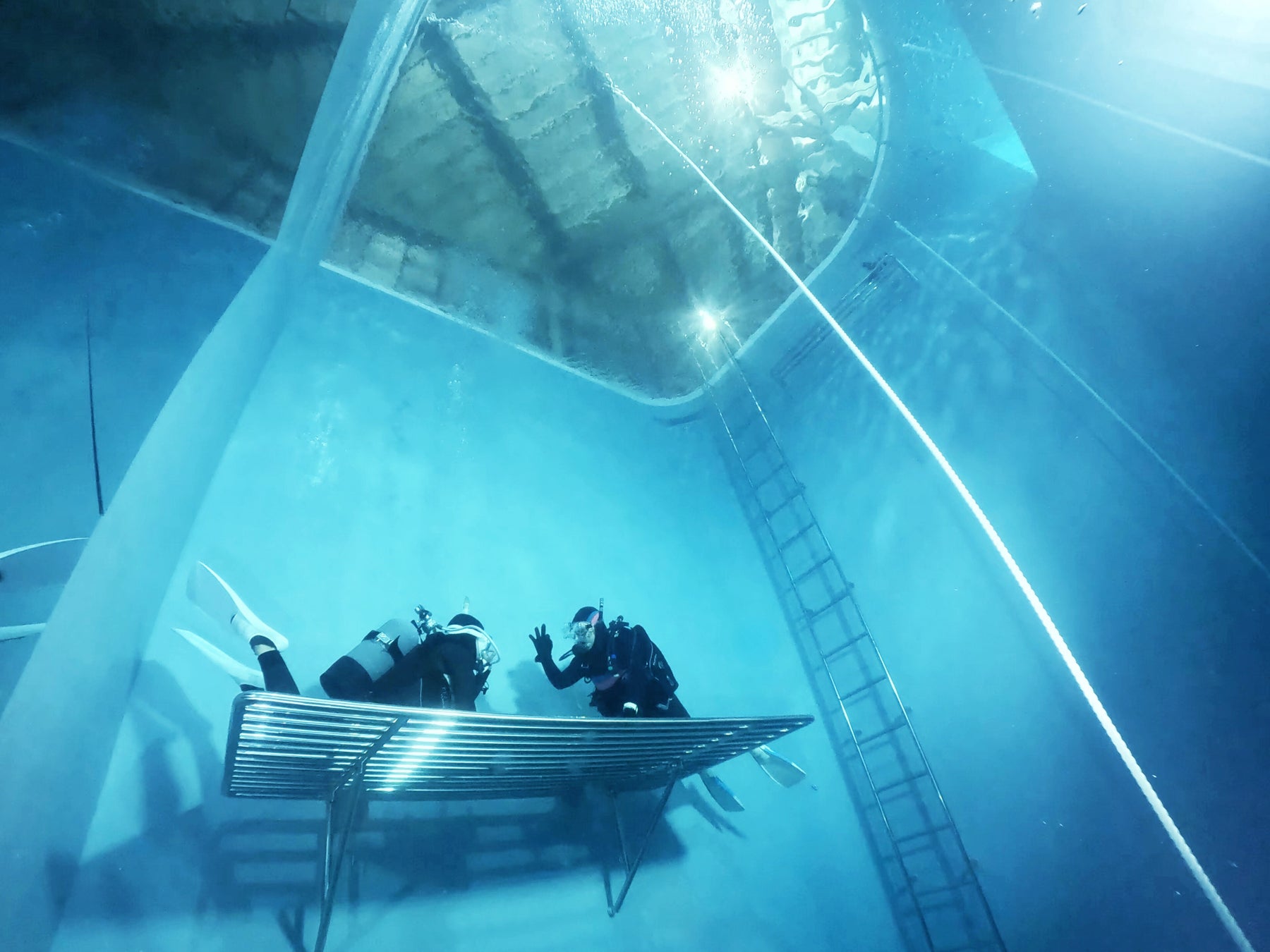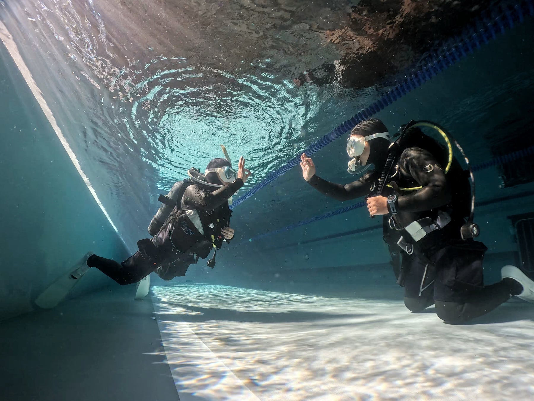 フィンを使用してダイブの練習ができる温水プール。ステップ、ラダーやロープを使った練習が可能建物内の窓からは水中の様子を見ることができ、撮影可能プールサイドではラグジュアリーなジャグジーでリラックスしていただけます。