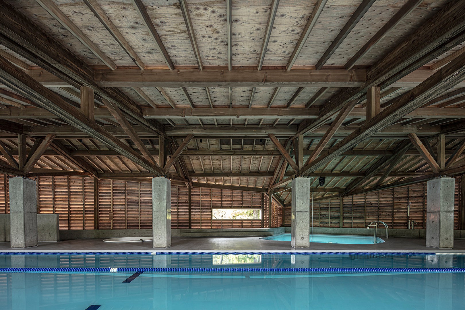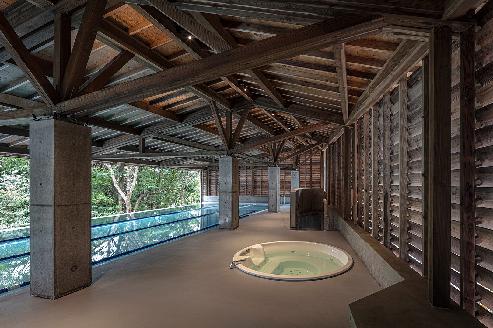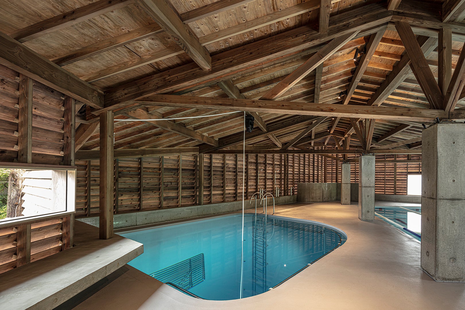 自然光の入る屋根付き25m×3レーンの温水スイミングプール。マスク、シュノーケル、フィンを装着可能天候に左右されずダイビングのプール講習を行うことが可能森と風を感じられるインフィニティプール
