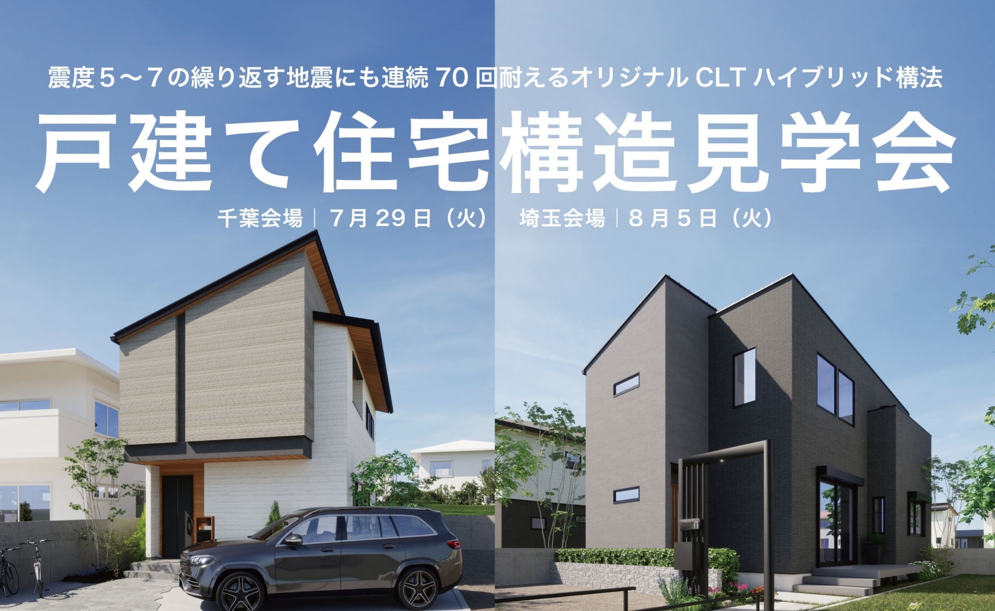 【関東で2会場開催】震度5~7の繰り返す地震にも連続70回耐えるオリジナルCLTハイブリッド構法の戸建て住宅構造見学会を開催