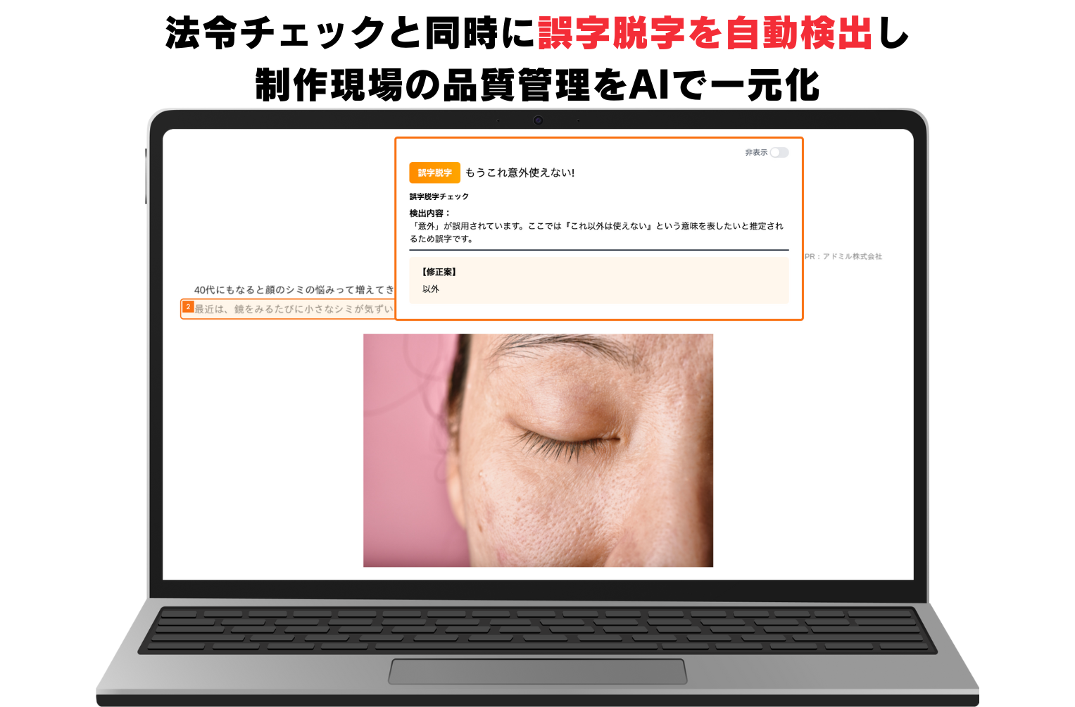 法令チェックと同時に誤字脱字を自動検出し制作現場の品質管理をAIで一元化