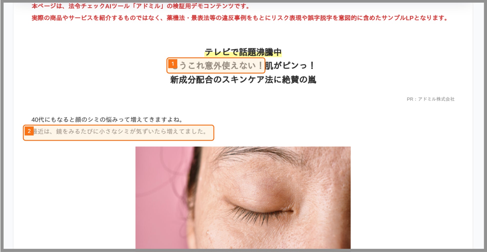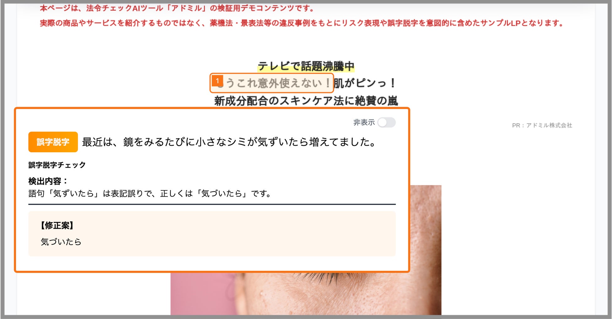 アドミルはこれまで、薬機法・景表法・健康増進法などに基づく広告表現のリスクを自動検出する機能を提供してきました。