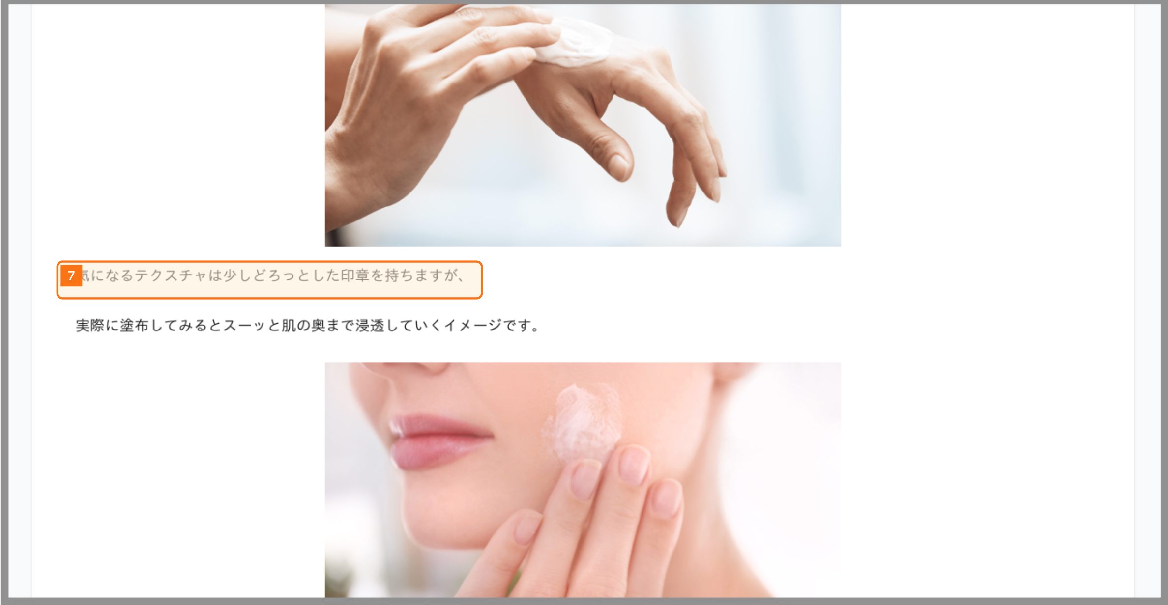 「気になるテクスチャは少しどろっとした印章を持ちますが」という誤字への指摘