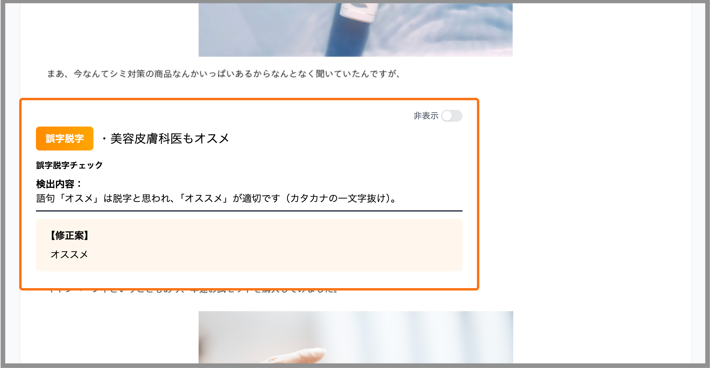 「美容皮膚科医もオスメ」という脱字への指摘