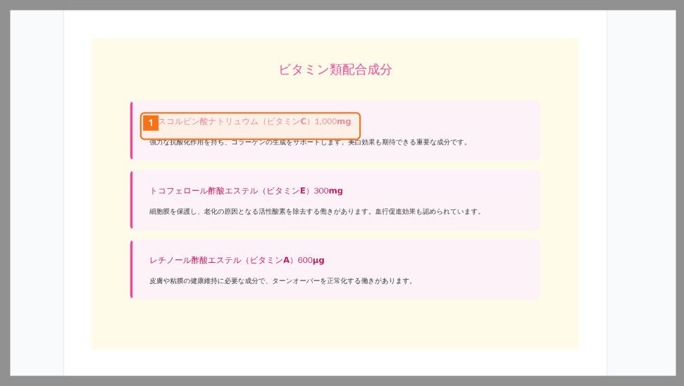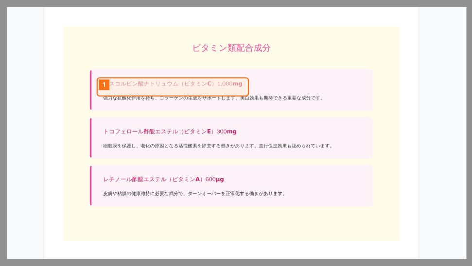 「アスコルビン酸ナトリュウム(ビタミンC)1,000mg」という誤りに対しての指摘