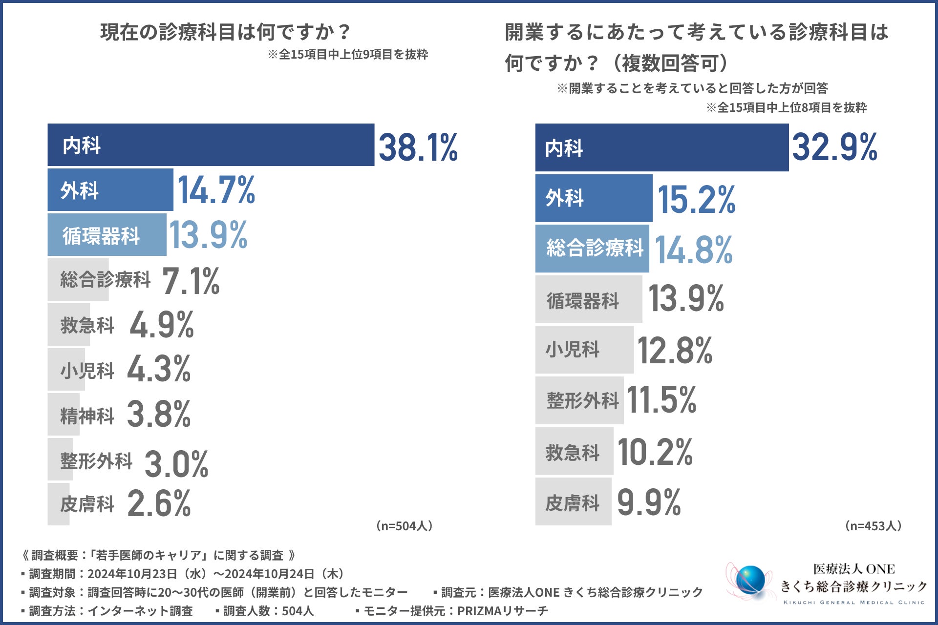 そこで今回、医療法人ONE きくち総合診療クリニック(https://kikuchi-geclinic.jp/index.html)は、20~30代の医師(開業前)を対象に、「若手医師のキャリア」に関する調査を実施しました。