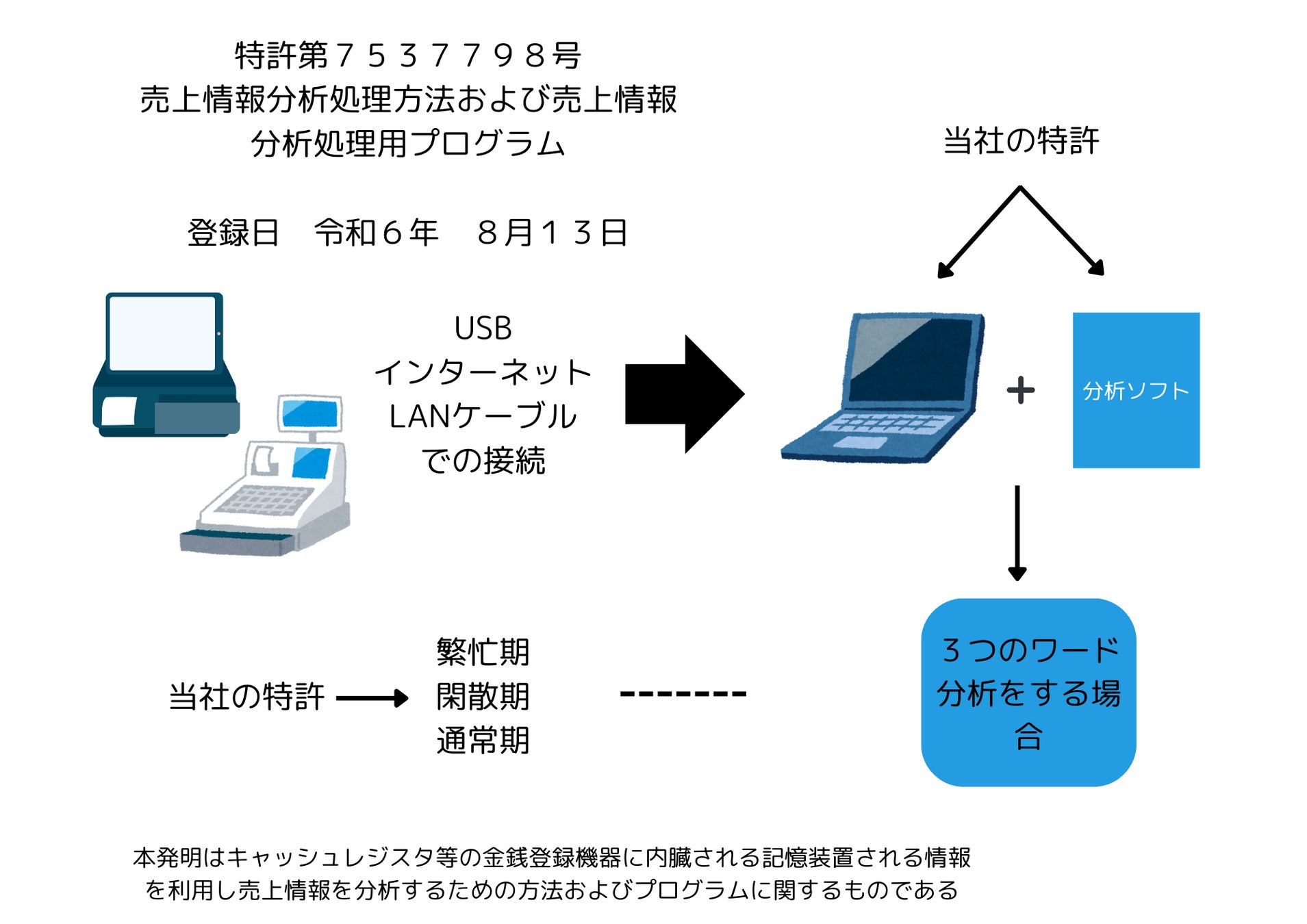 POSレジ売上情報分析処理方法および売上情報分析処理用プログラムの特許を取得