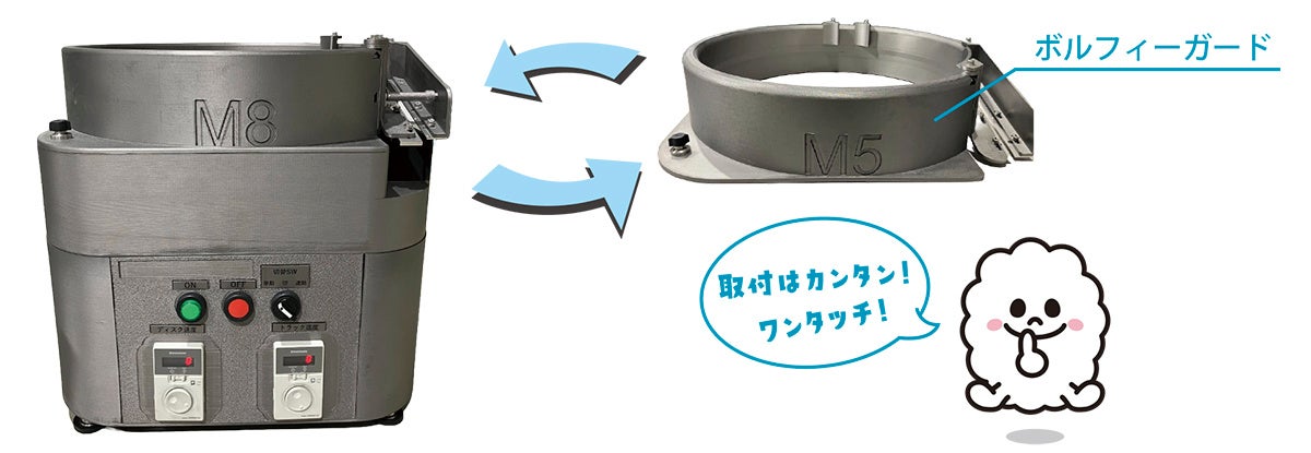 わずか2Kg程度の“ボルフィーガード”を交換するだけでM4~M8の対応が可能。