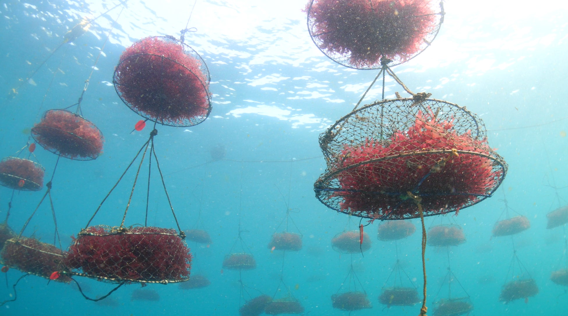 海藻が周辺の生態系においてどのような役割を果たしているのかを明らかにする研究を行なっています。今回の調査では、想定よりも非常に高密度の動物が海藻養殖施設の周辺に生息していたことが明らかになりました。小型動物で言えば、例えば直径40cm程度の海藻の養殖籠、あるいはその中で養殖されている海藻そのものから、約5,000個体から6,000個体もの動物が採集されました。養殖場には籠が大量に吊るされているので、養殖場全体では膨大な動物に対して、生息場を提供しているということになります。また、海藻だけではなくて、海藻養殖に利用されているロープや養殖のための籠といった人工的な構造物も非常に多くの動物に対して生息場を提供しているということがわかりました。