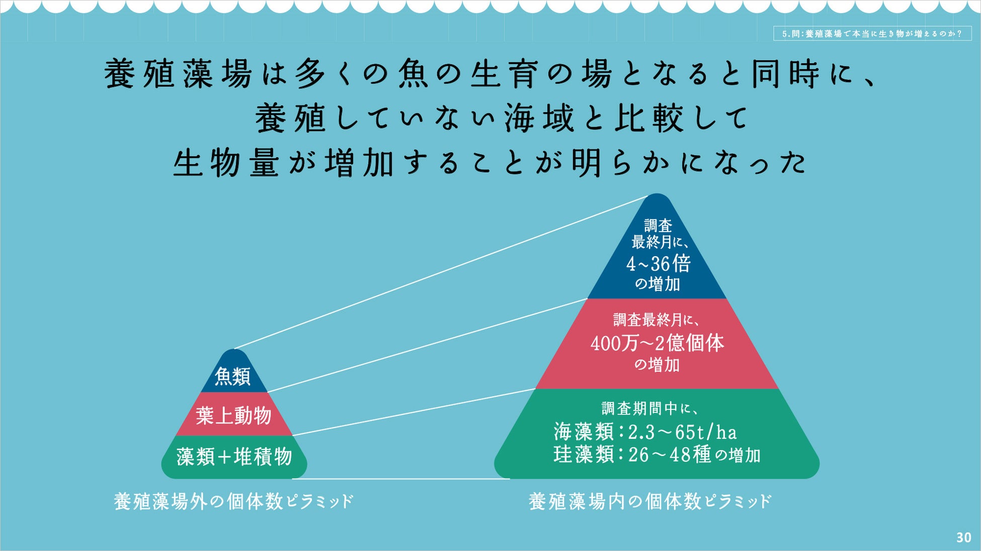 養殖藻場を広げることで魚類個体数が増加する