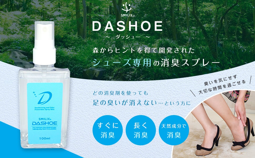 「SMILIXスマイリクス」から、天然素材で環境に優しい新製品の靴消臭スプレー「DASHOEダッシュー」が登場!家具専門店などプロフェッショナルからも高評価を得ています。