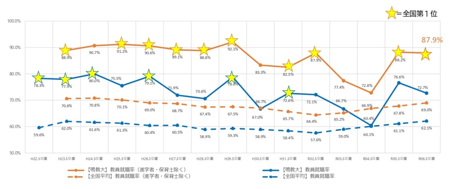 鳴教大が2年連続で教員就職率全国第1位!!文科省が国立の教員養成大学・学部の令和6年3月卒業者の就職状況等を公表