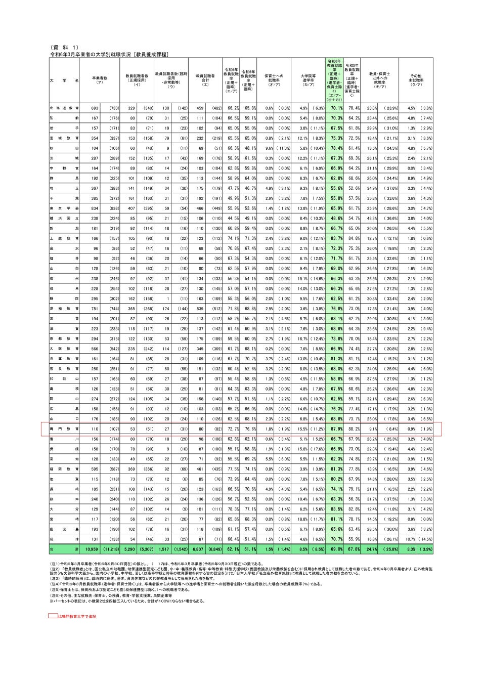 令和6年12月26日に、文部科学省が国立教員養成大学・学部の令和6年3月卒業者の就職状況を公表しました。