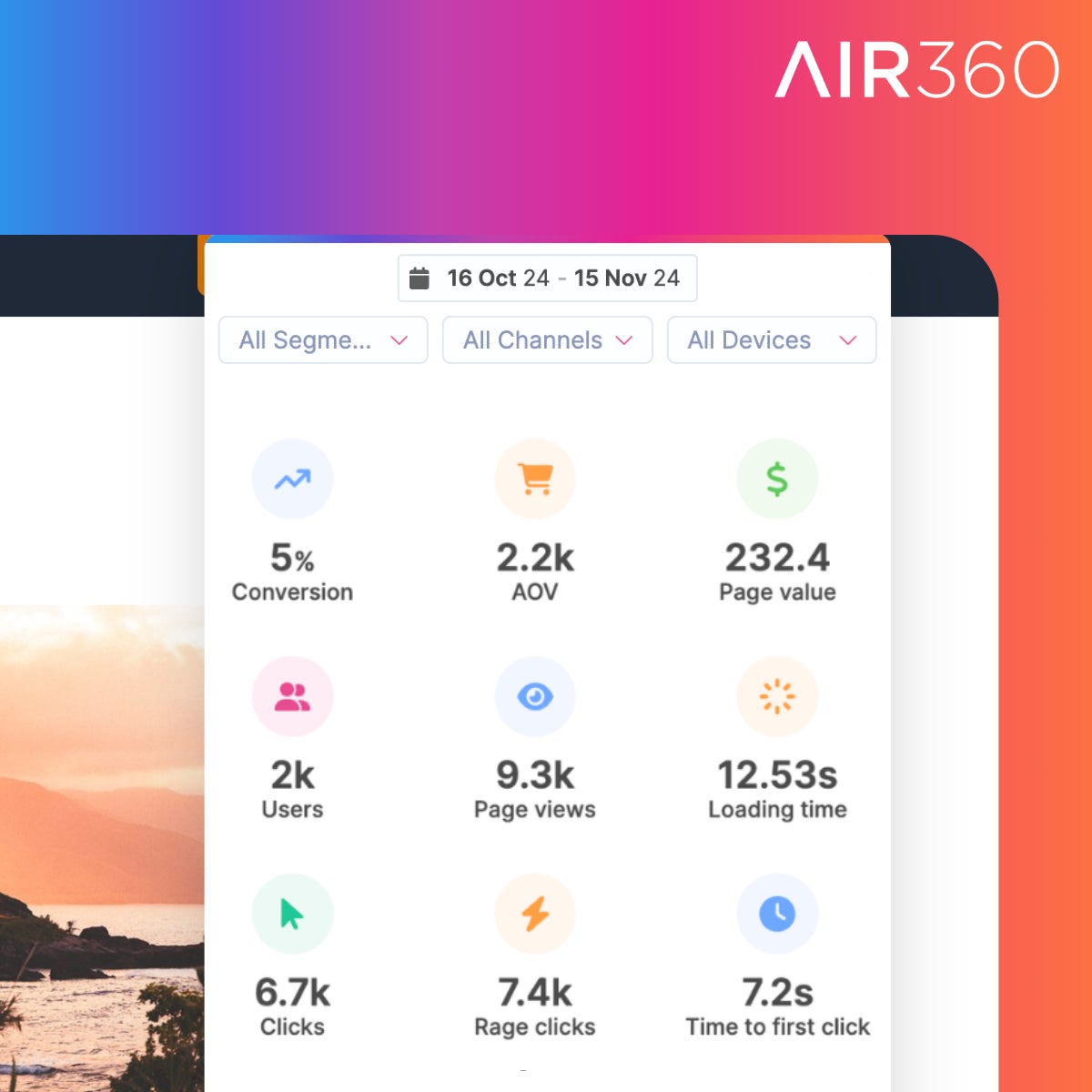 AIR360株式会社(本社:東京都千代田区、CEO:フロラン・ドゥフォンティス)はデジタル体験分析ツールAir360の新たなページ上分析機能をリリースしました。新たな機能によって、今まで以上にスムーズにウェブサイトのパフォーマンス分析を可能にし、企業様のウェブサイトの購買率の向上をサポートします。