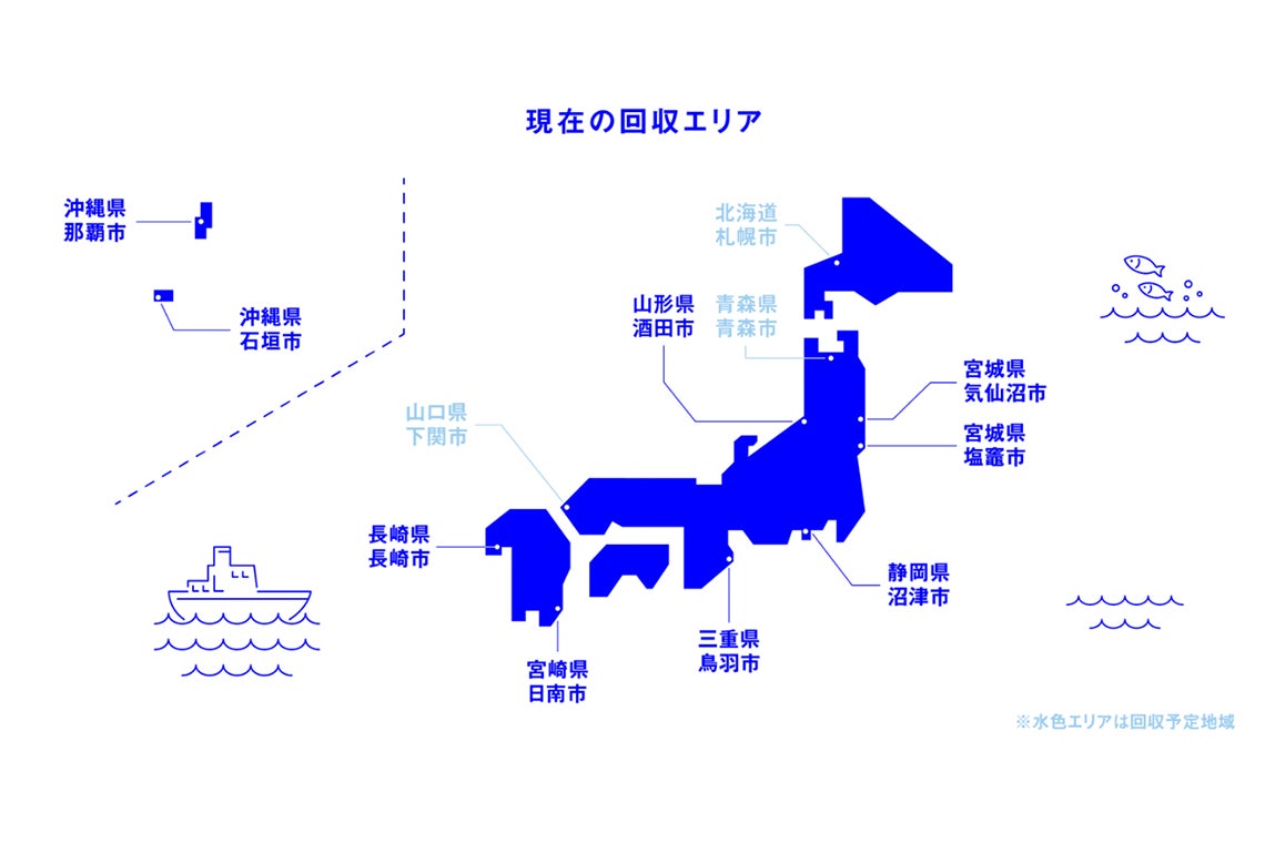amuのネットワークを通じて、初回出荷分の廃棄漁具を宮城県気仙沼市の漁港から調達。調達網は順次拡張されており、地産地消の取り組みも推進していく予定です。
