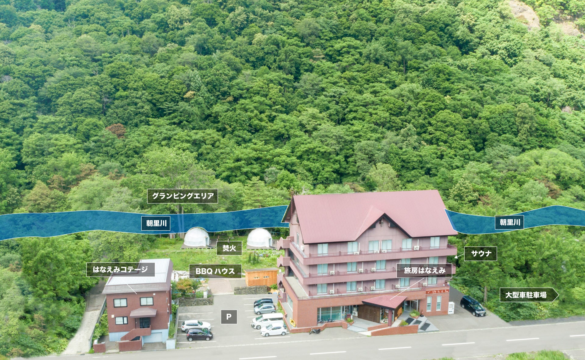 小樽市の朝里川温泉にある「旅房はなえみ」は、自然豊かなロケーションの中で、プライベートサウナ、グランピング、BBQ、焚き火など特別なひとときを提供しています。