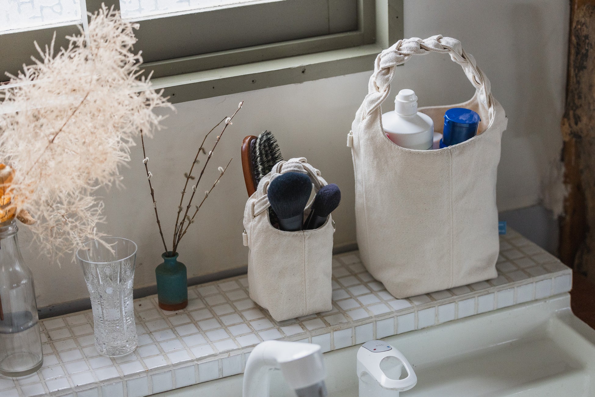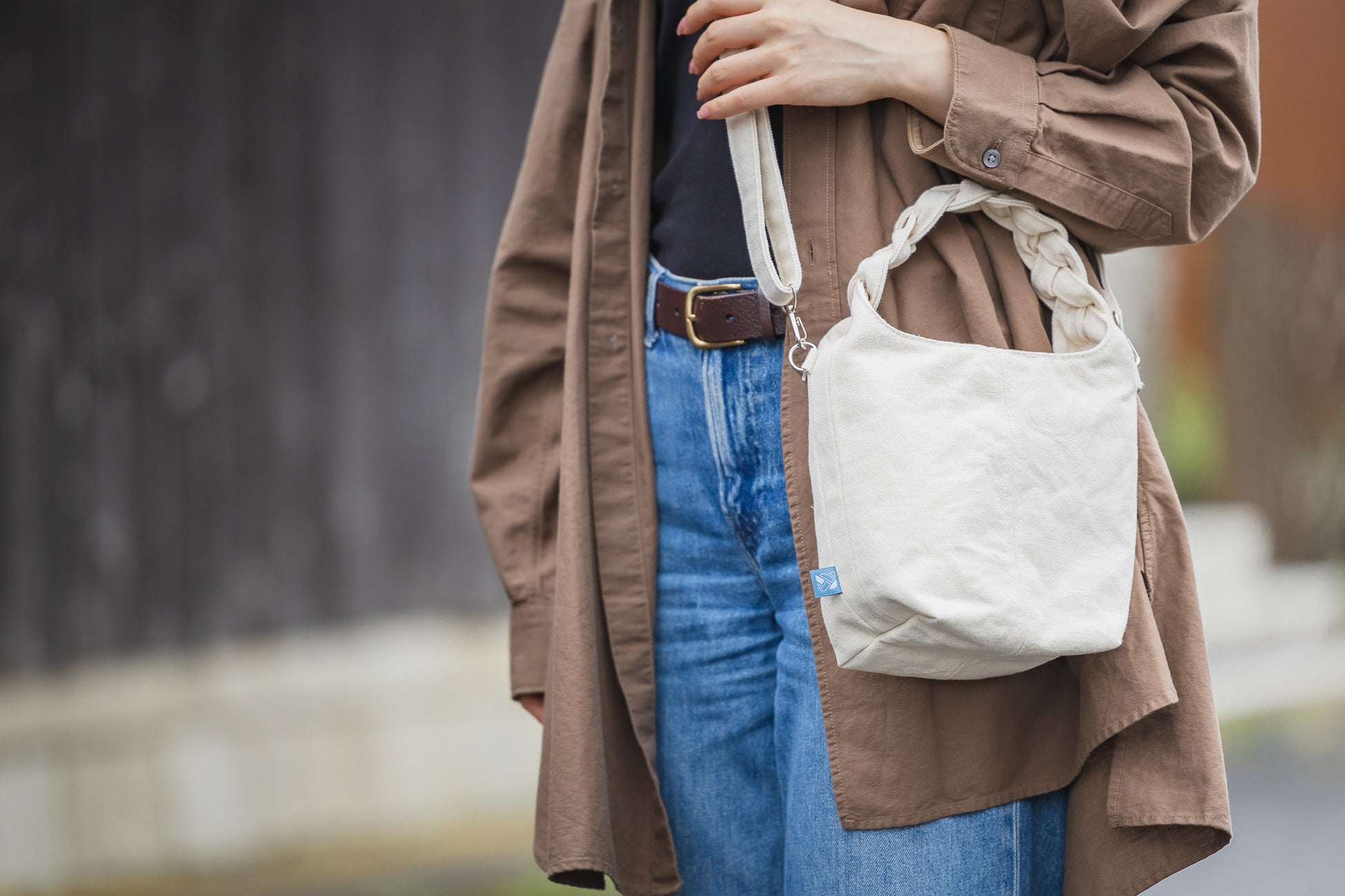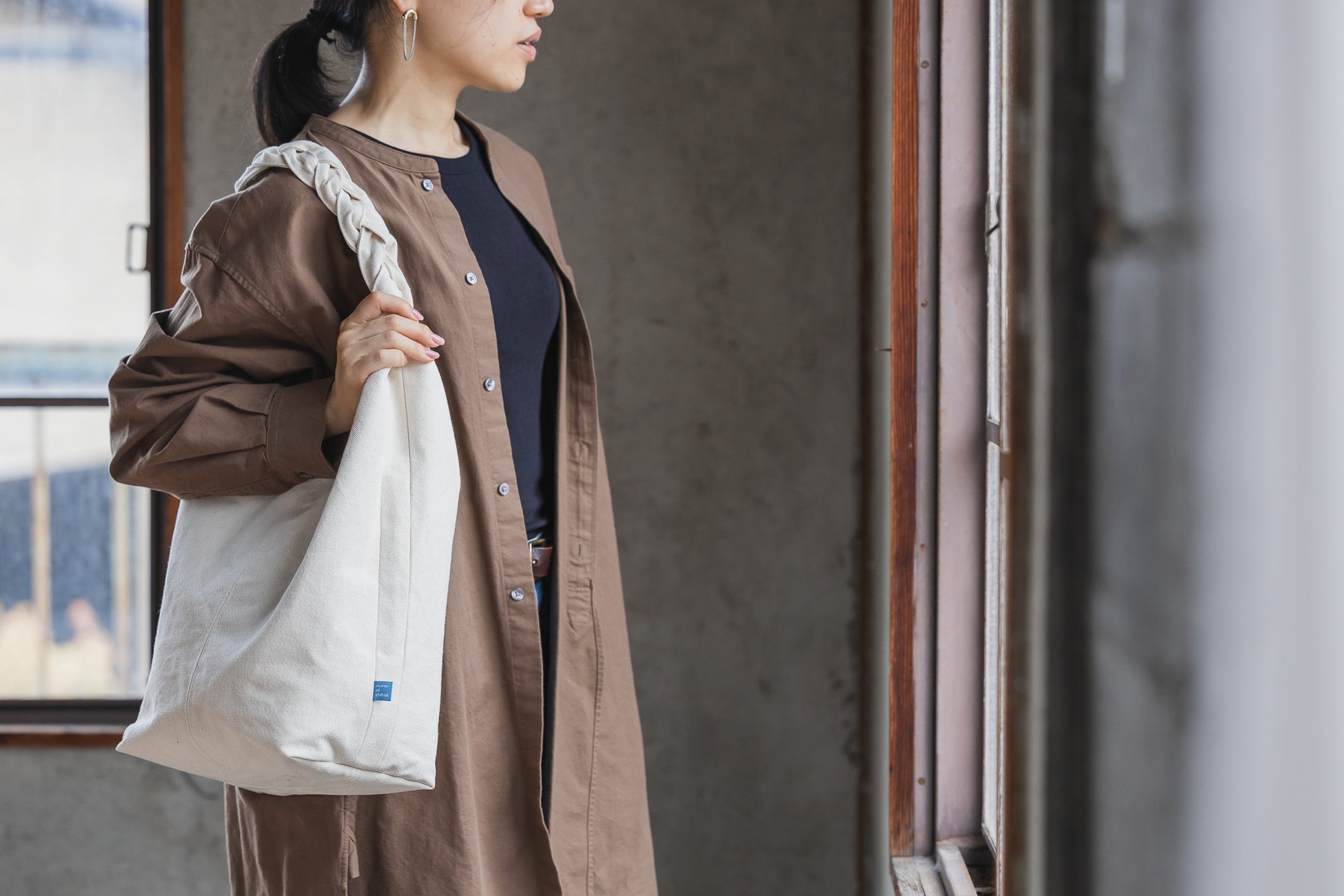帆布を三つ編みにした独特な握る感触は、使うほどに手になじみ、自分だけのバッグに育てる楽しみ(経年変化)も味わえます。