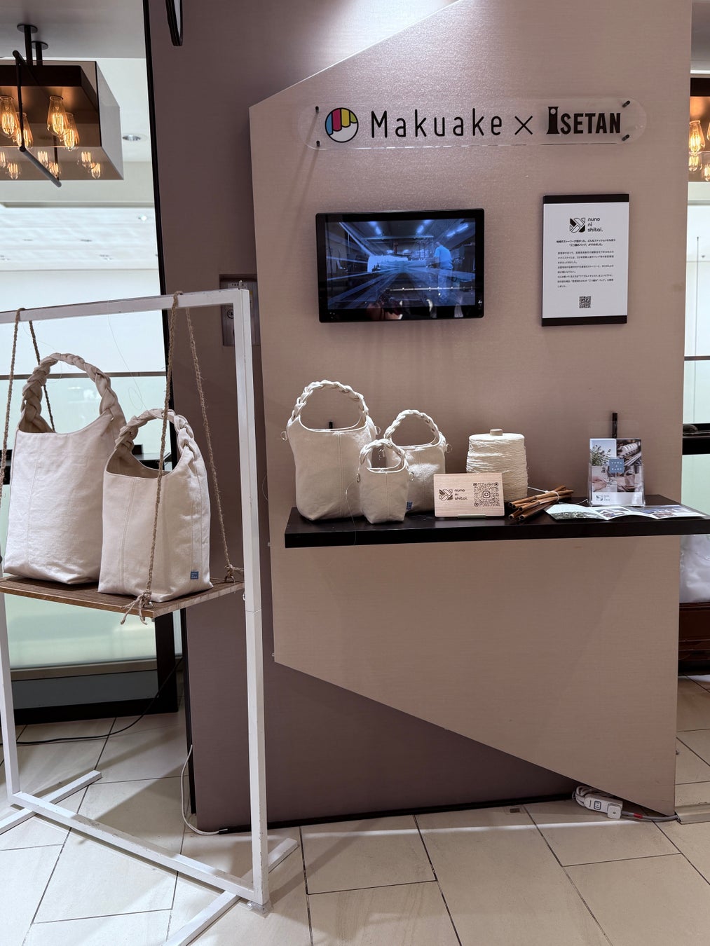 2024年12月10日まで、伊勢丹新宿本店2階の一角に設けられた Makuakeの展示スペースにて、nuno ni shitai. の全商品を展示中です。ぜひこの機会に、実際の商品を手に取ってご覧ください。