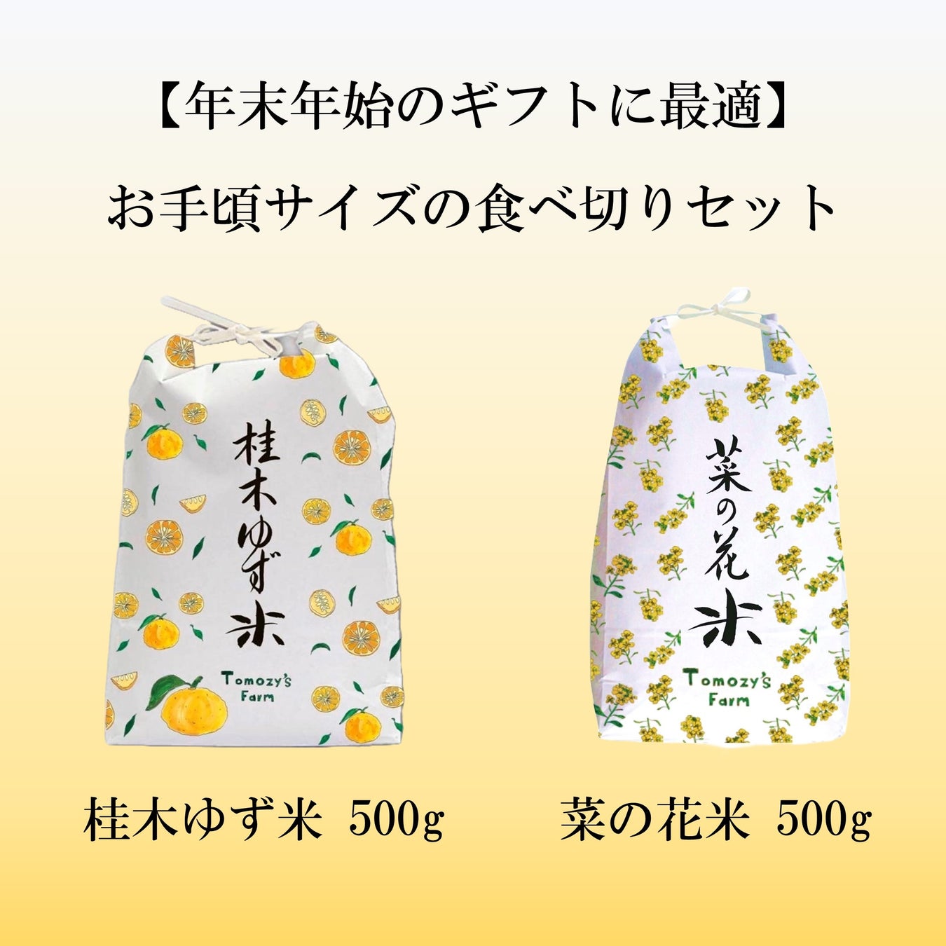 支援者には、穫れたて新米の『桂木ゆず米』の5kg・10kgをお届けするリターンのほか、『桂木ゆず米』と『菜の花米』の2種類をお手頃サイズ(500g)のオリジナルパッケージに包んでお届けするギフト向けセットをご用意しています。ギフト向けセットは12月中旬頃に発送予定で、「年末年始の挨拶で配るのにちょうど良い」「地元のお米として親戚にプレゼントしたい」といった声もいただいています。