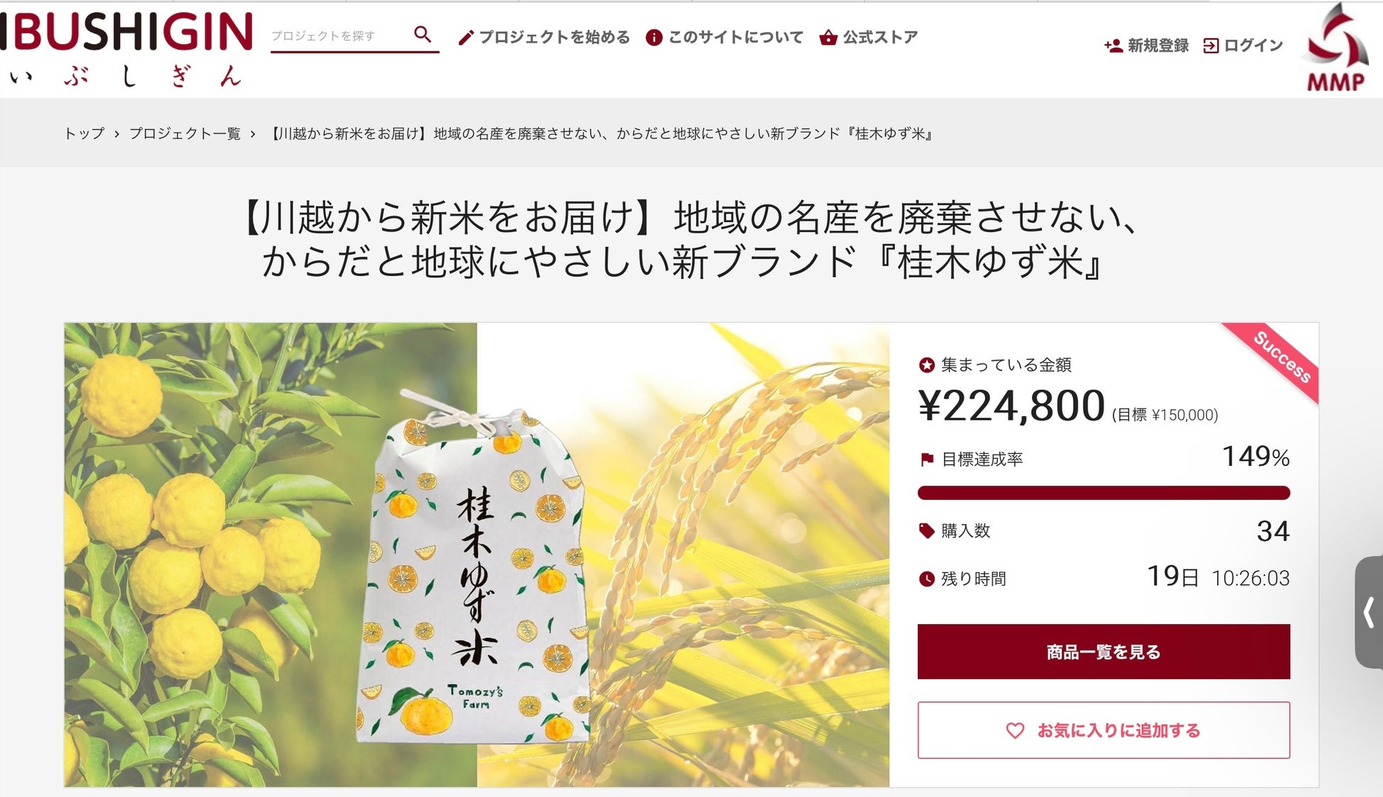 【新発売】日本初・唯一となる埼玉県の名産「桂木ゆず」を肥料に使用したお米『桂木ゆず米』のクラウドファンディングが早期目標達成!
