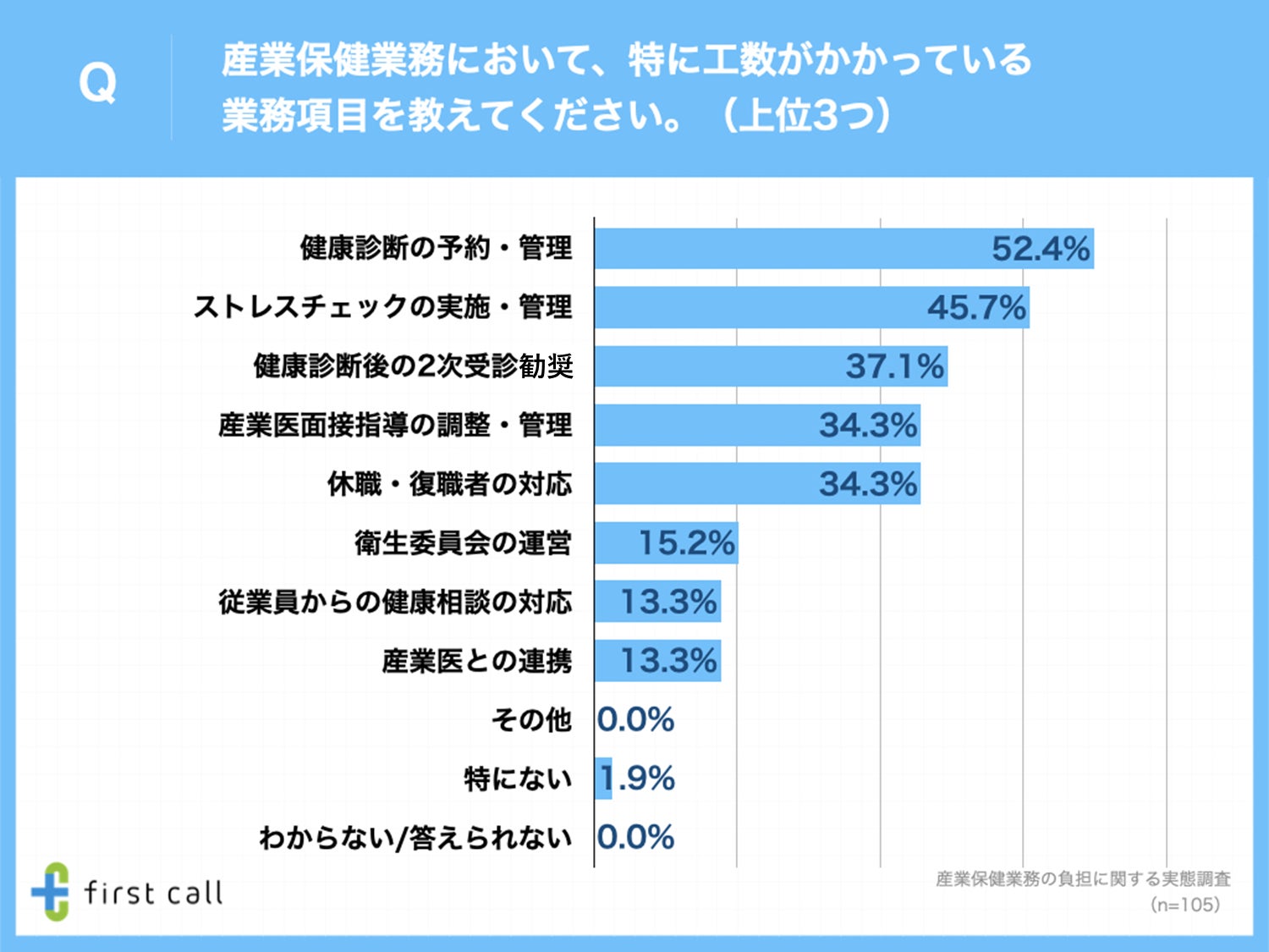 特に工数がかかる業務は「健康診断の予約・管理」(52.4%)